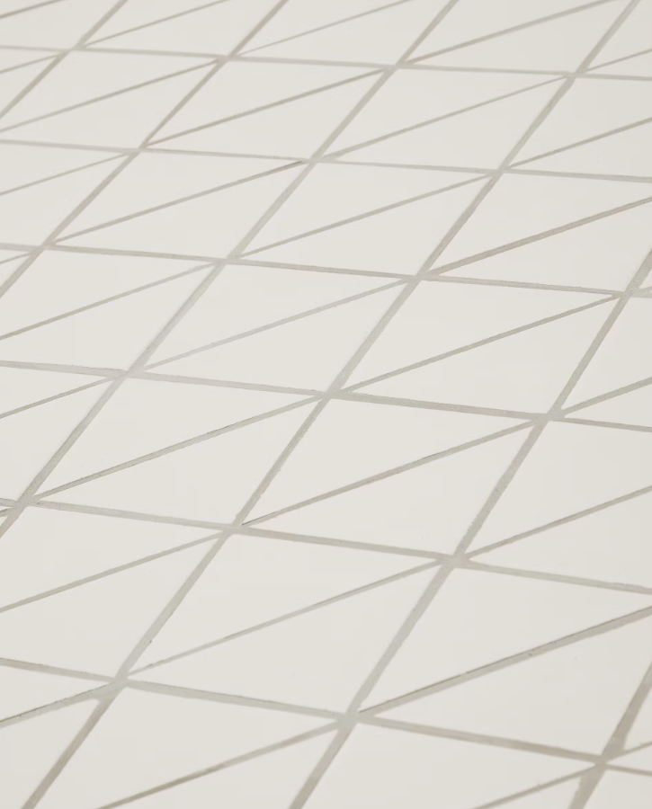 Het blad, gemaakt van handmatig gelegde mozaïek van geometrische tegels in ecru, is een eerbetoon aan klassieke ambachtelijke technieken en vormt tegelijkertijd een uniek decoratief element. Elke tegel is zorgvuldig geselecteerd, wat een opvallend en tegelijkertijd tijdloos patroon creëert.