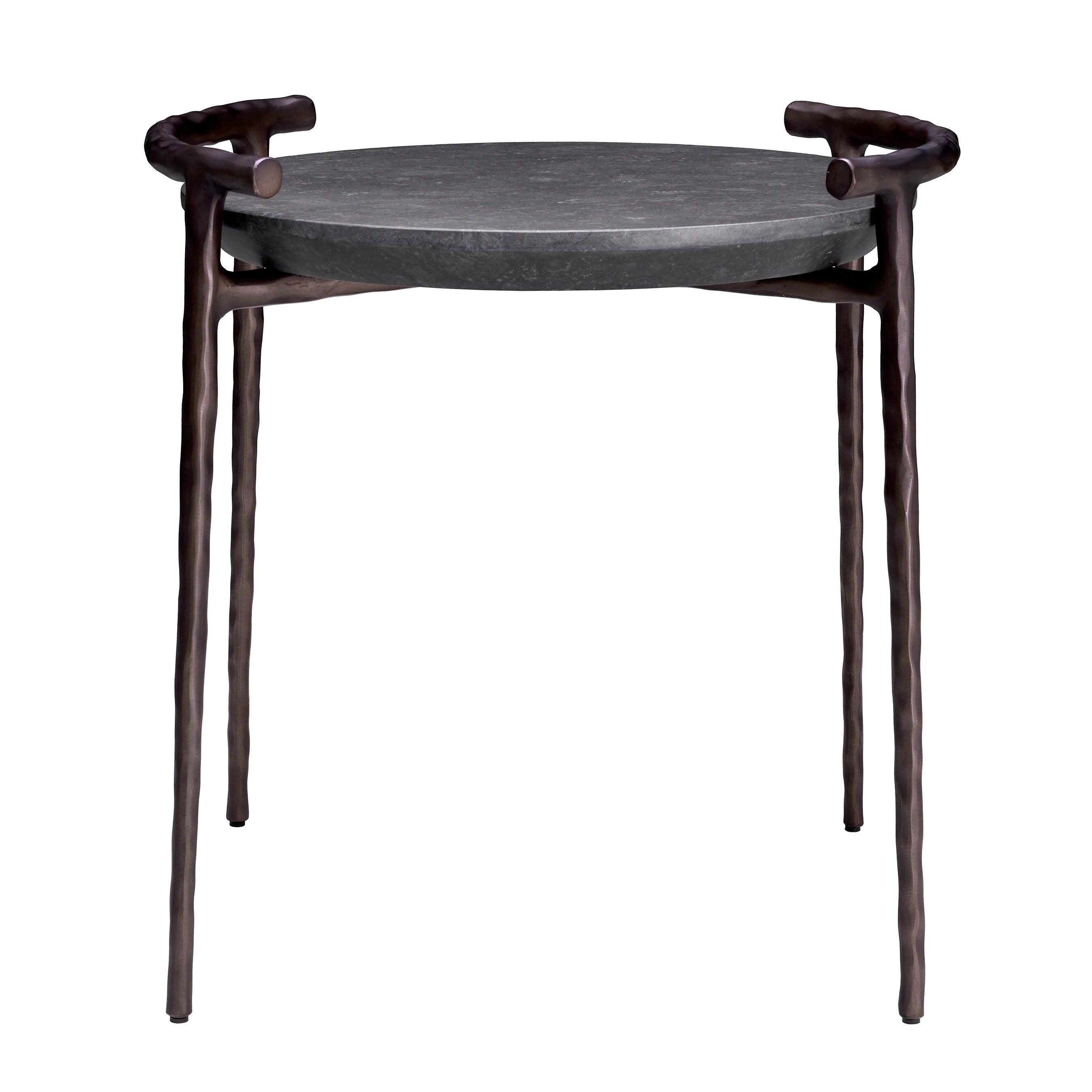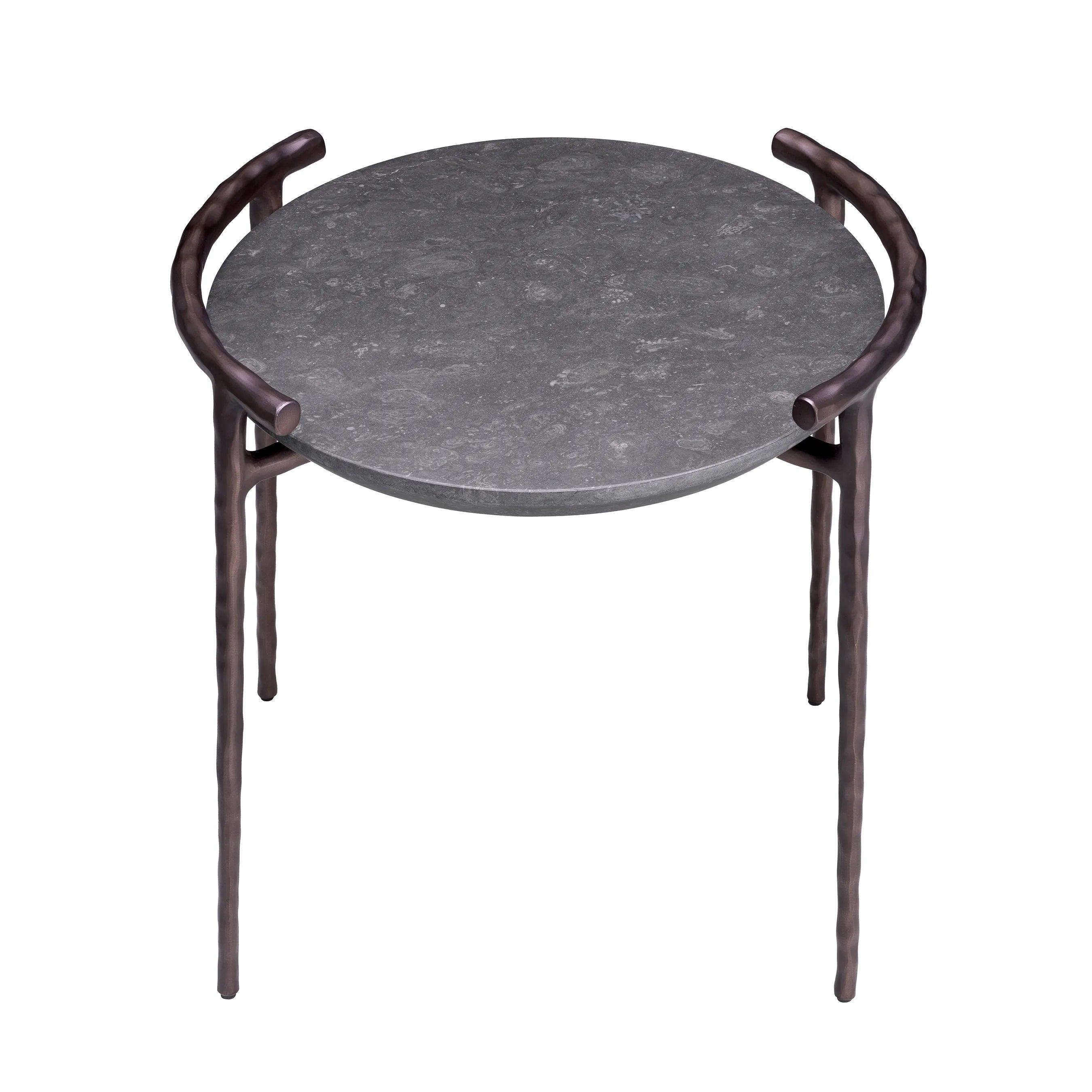 De gesmeed bronzen poten zijn niet alleen een uitdrukking van soliditeit en duurzaamheid, maar voegen ook een ongelooflijke elegantie toe aan de tafel. Hun afwerking verwijst naar oude ambachtelijke technieken, waardoor het meubel diepte en geschiedenis krijgt.