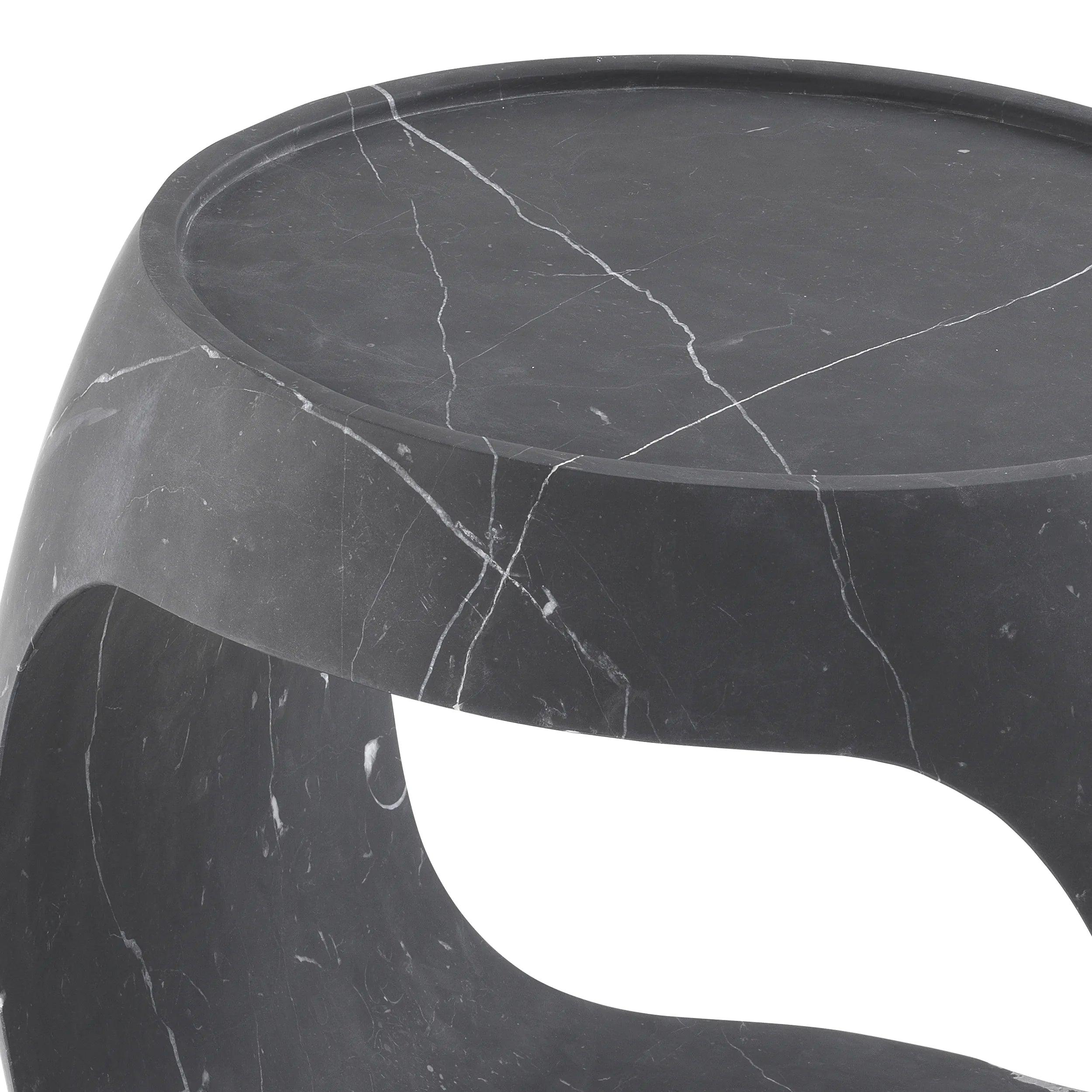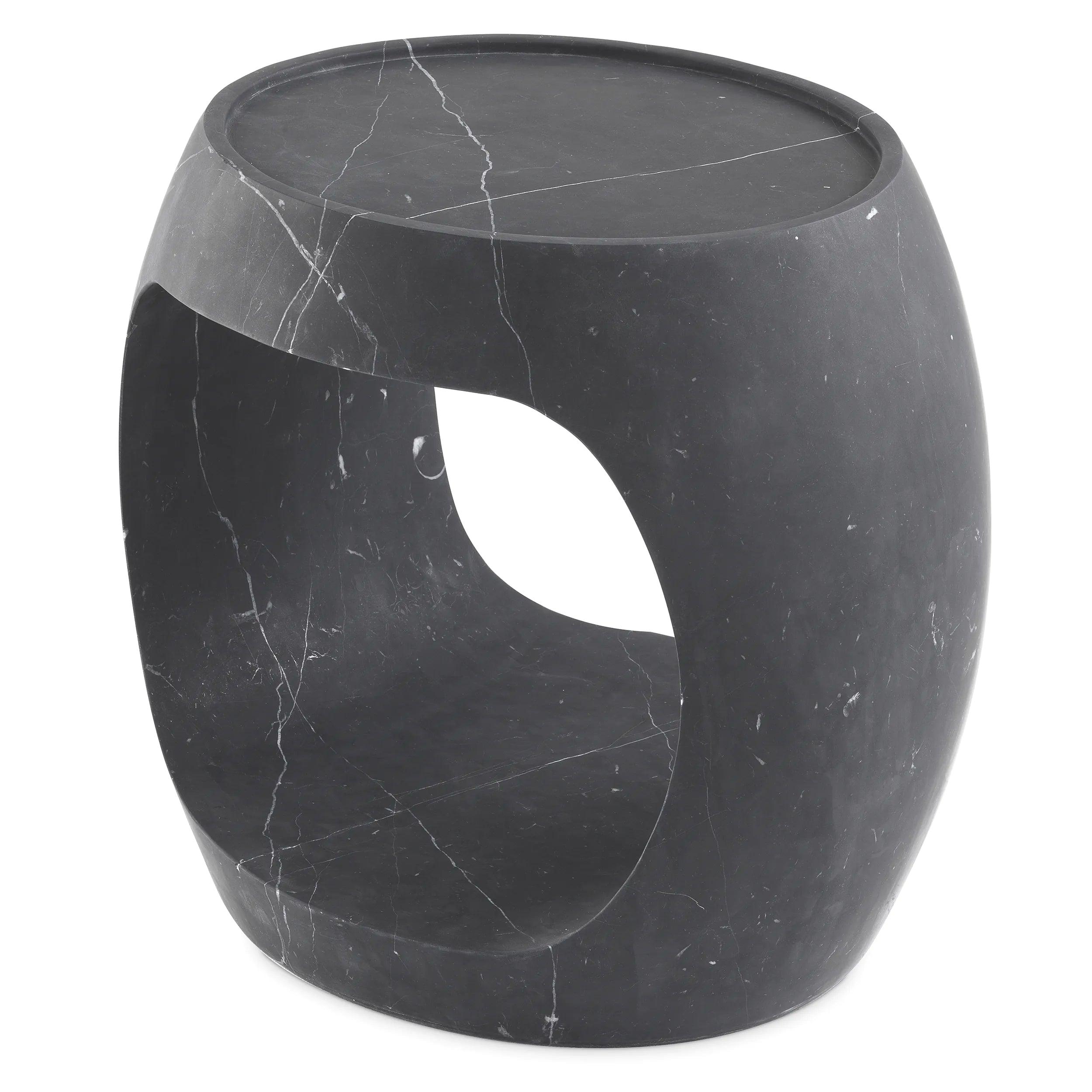 Wat de zwarte tafel Clipper onderscheidt van andere tafels, is het feit dat hij volledig uit één stuk zwarte marmer is gehouwen. Hierdoor heeft elk exemplaar unieke aderen en kleurnuances, die het tot een uniek stuk maken. De gepolijste afwerking geeft het extra charme, waardoor de steen niet alleen een matte glans krijgt, maar ook een ongelooflijk zachte textuur.