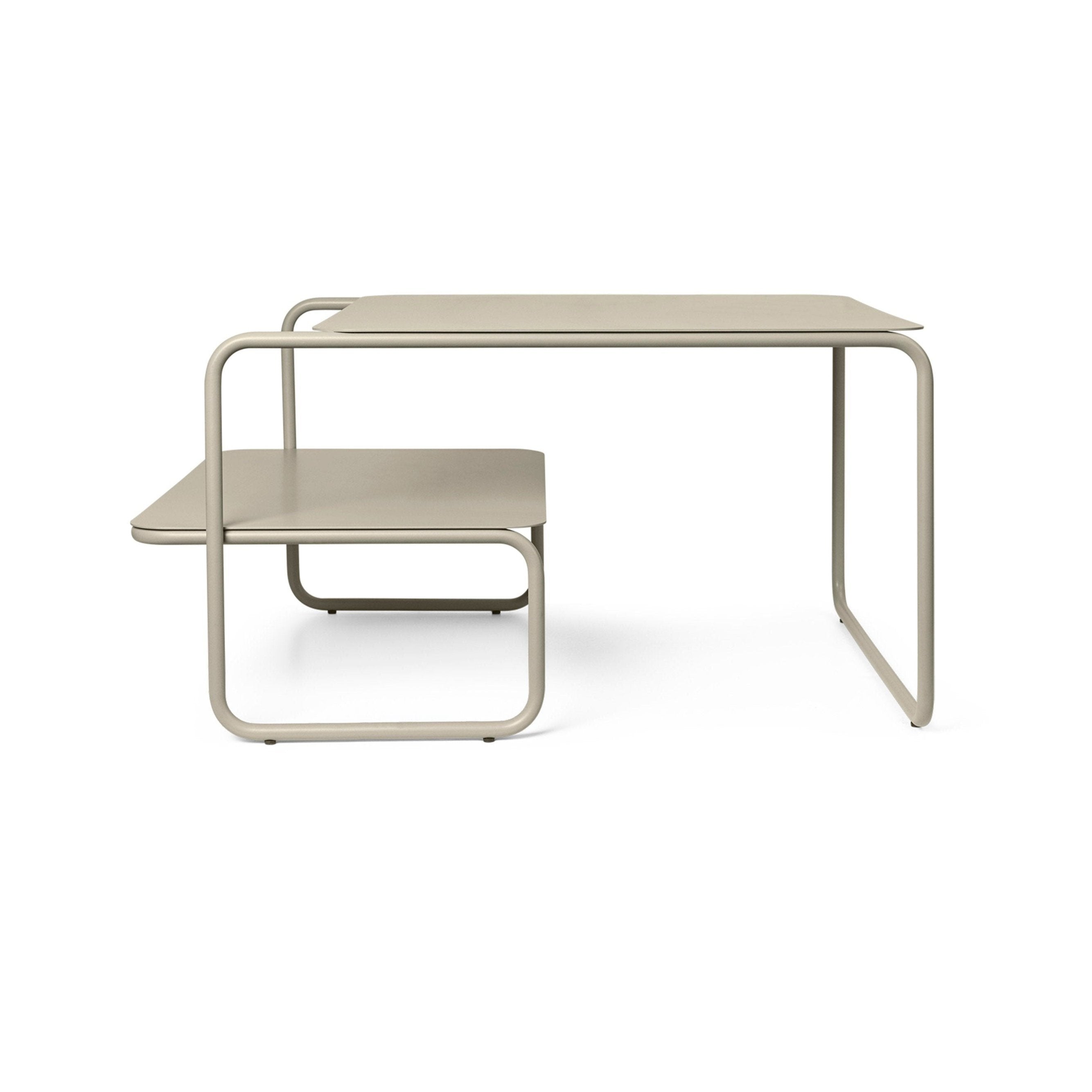 Bijzettafel Level in beige is een modern meubel met een intrigerend, asymmetrisch profiel, gebaseerd op één doorlopende geometrische lijn van het frame. Het heeft twee niveaus die extra opbergruimte bieden, waardoor het een praktische en stijlvolle aanvulling is. Gemaakt van poedergecoat staal, is de bijzettafel Level geschikt voor zowel binnen- als buitengebruik, wat veelzijdigheid in de inrichting van uw ruimte biedt.