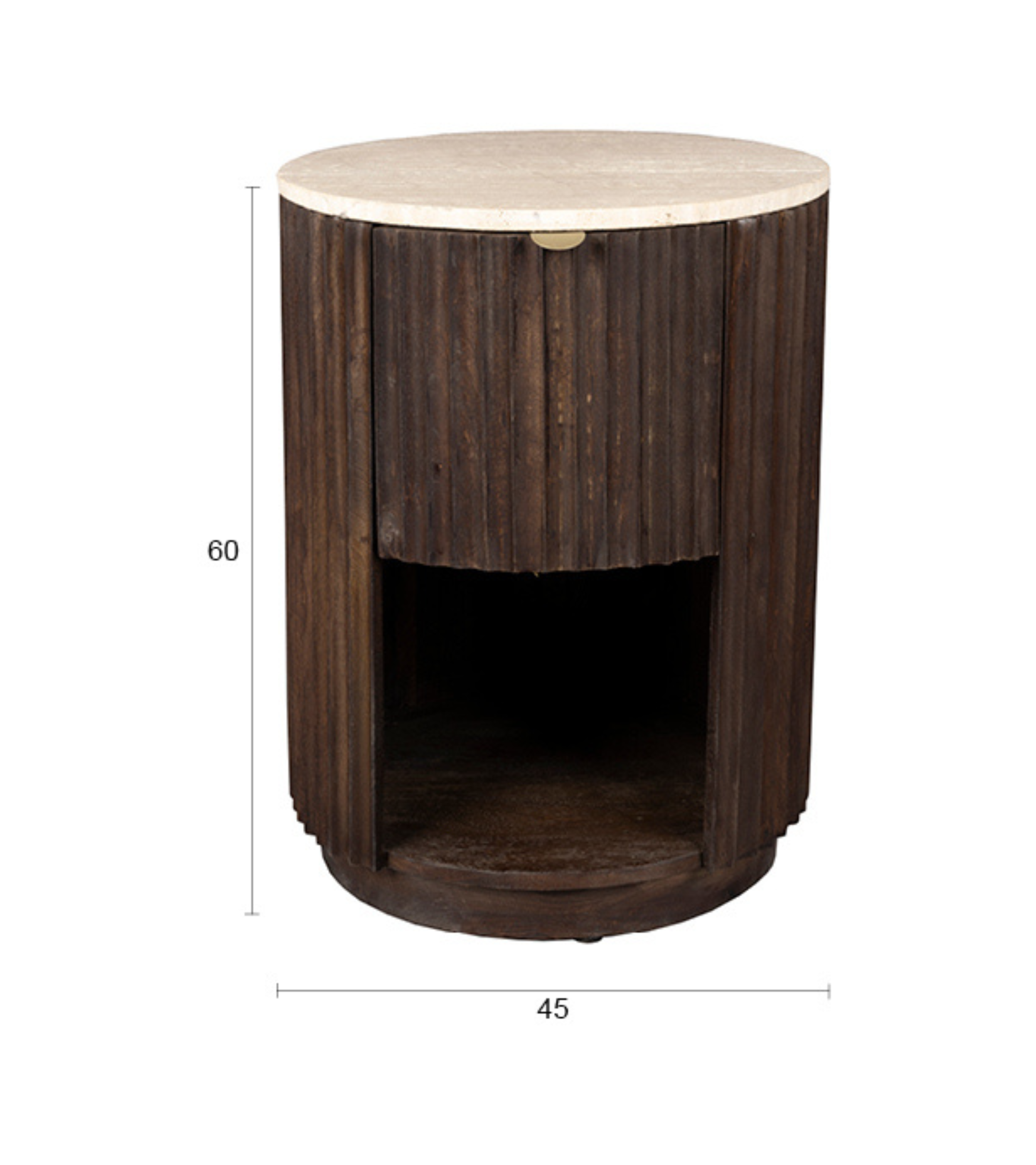Szukasz miejsca, w którym można zaszyć się z książką i filiżanką herbaty? Marlow to stolik boczny stworzony do takich chwil. Wykonany z drewna mango w ciepłym, orzechowym odcieniu, zachwyca ryflowanym wykończeniem oraz eleganckim blatem z naturalnego trawertynu. Kontrast między jasnym kamieniem a ciemnym drewnem tworzy efektowną i zarazem przytulną całość, która natychmiast dodaje charakteru każdemu wnętrzu.