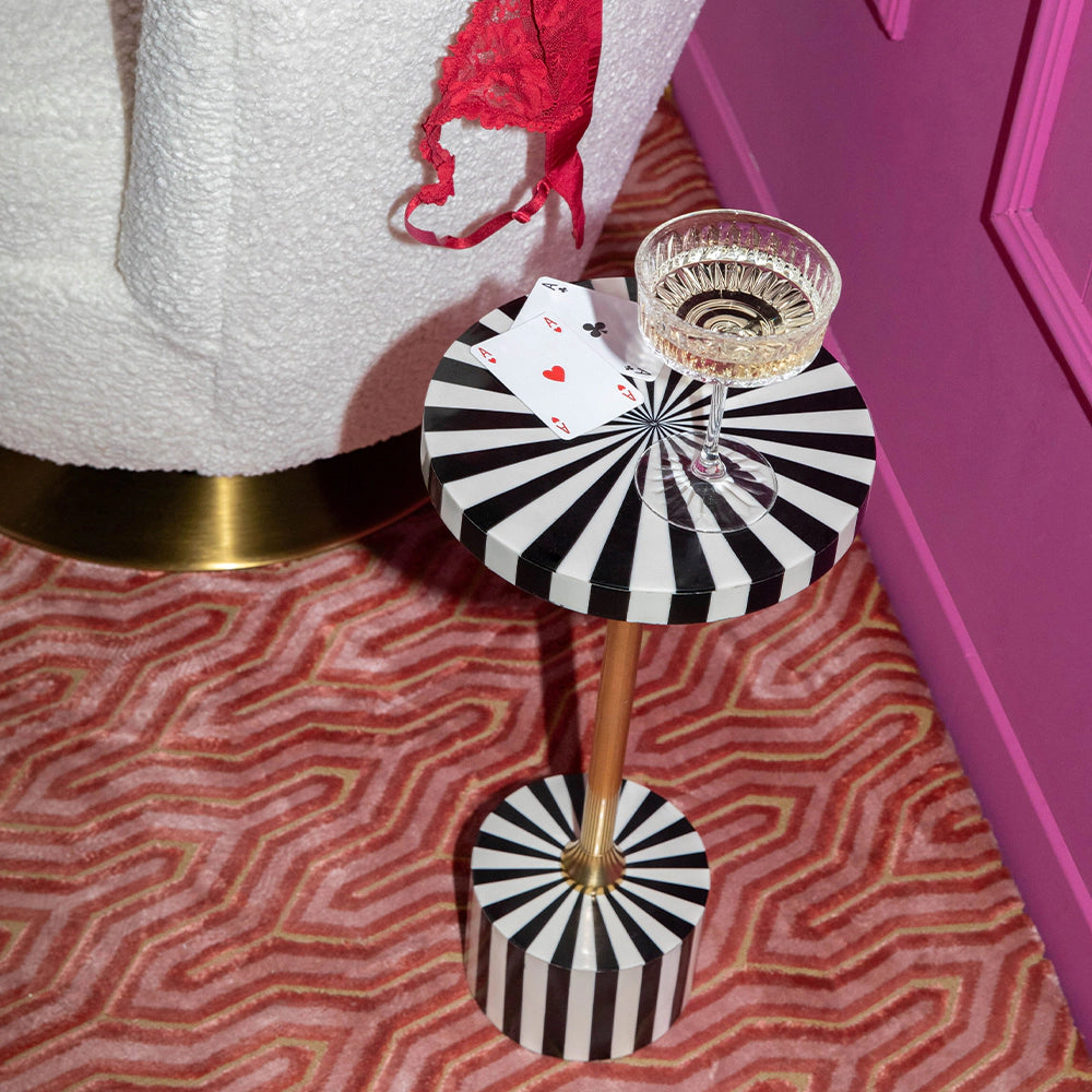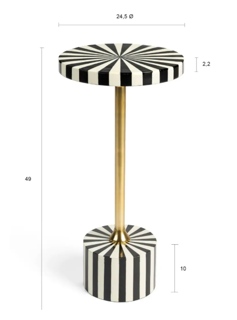 Zijtafel Strike Lucky van Bold Monkey is een ontwerp dat een eerbetoon brengt aan de retro stijl met een moderne twist. Zijn geometrische vorm, geïnspireerd op vallende kegels, symboliseert het moment van triomf – een perfect geluksbrenger voor uw interieur. Het contrasterende zwart-witte blad van hars en de slanke, vergulde basis creëren een oogverblindende compositie die zowel in de slaapkamer als nachtkastje als in de woonkamer als elegante bijzettafel uitstekend tot zijn recht komt.