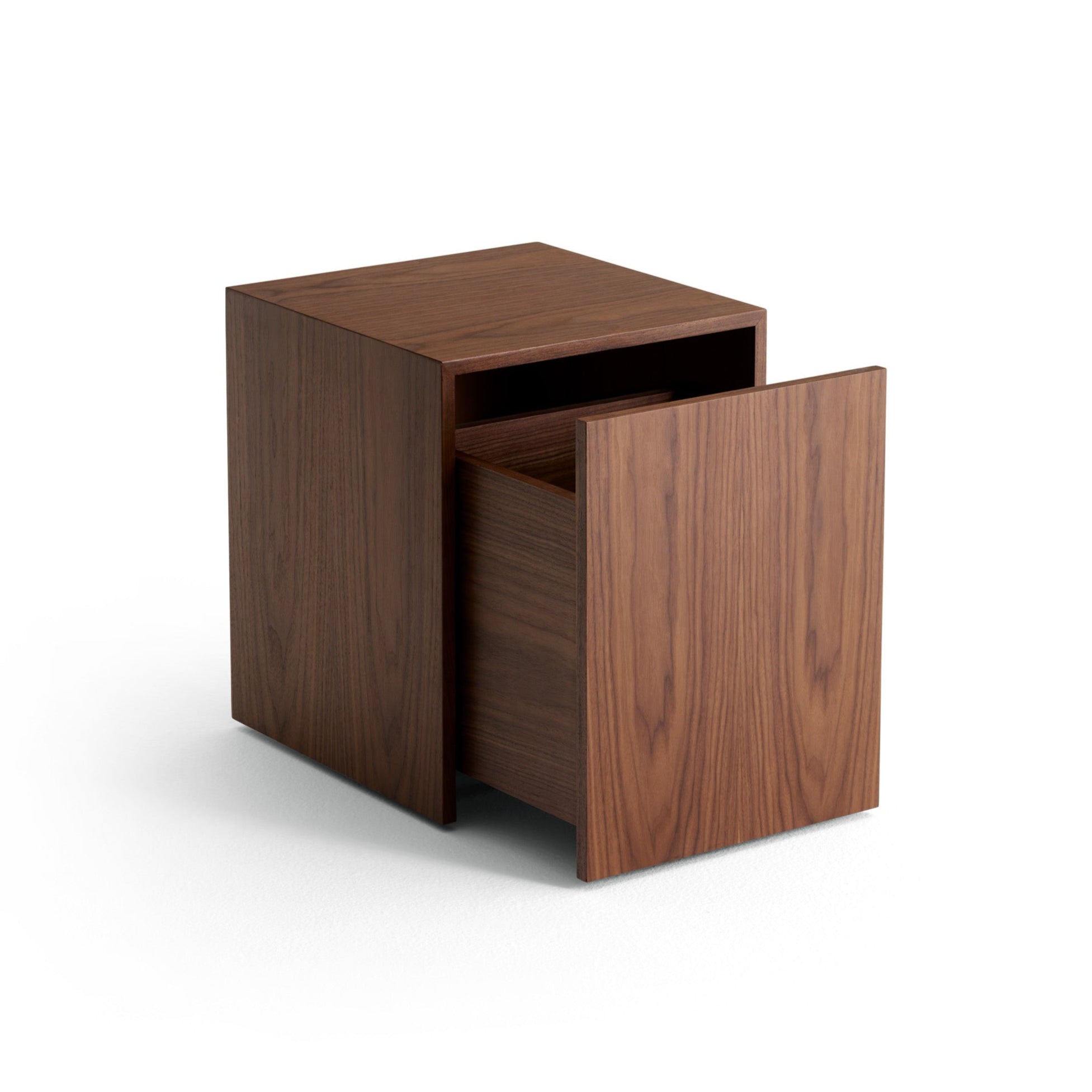 Mass bijzettafel met lade is een elegante combinatie van functionaliteit en tijdloos design. Gemaakt van notenhoutfineer, straalt het warmte en verfijnde esthetiek uit, waardoor het een stijlvolle basis vormt voor een lamp, decoratieve objecten of boeken. Zijn minimalistische vorm benadrukt de Scandinavische inspiratie en ambachtelijke kwaliteit van de afwerking.