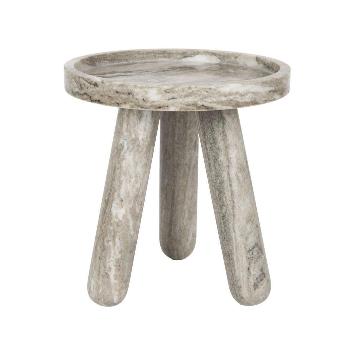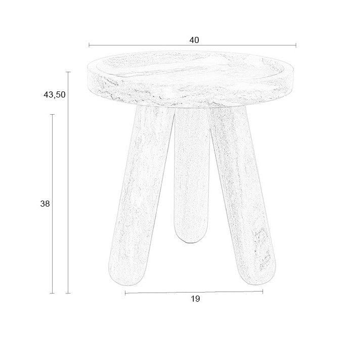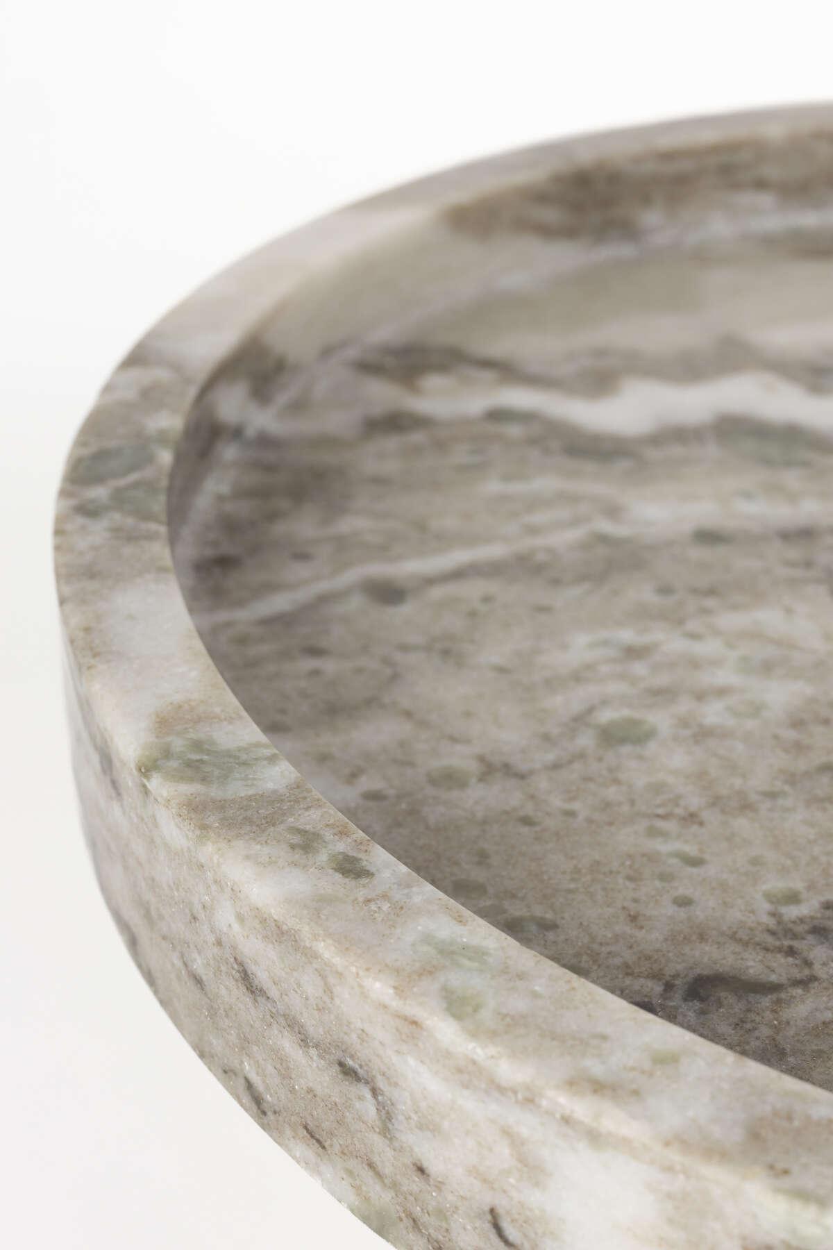 Het ronde tafelblad van de tafel in bruine marmer straalt tijdloze klasse uit en wordt ondersteund door drie stevige poten. De verhoogde rand voorkomt dat voorwerpen van de tafel vallen. Dankzij de compacte afmetingen is deze bijzettafel veelzijdig – hij kan dienen als extra opbergruimte of als een stijlvol decoratief element.