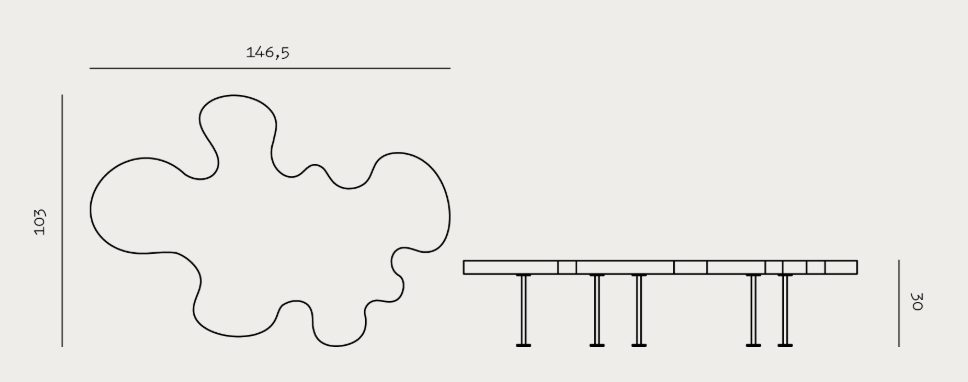 De tafel steunt op slanke poten van zwart gelakt staal, die contrasteren met het houten blad en het geheel een lichte uitstraling geven. Devon is perfect als centraal element in de woonkamer en voegt zowel elegantie als een subtiele artistieke toets toe aan de ruimte.