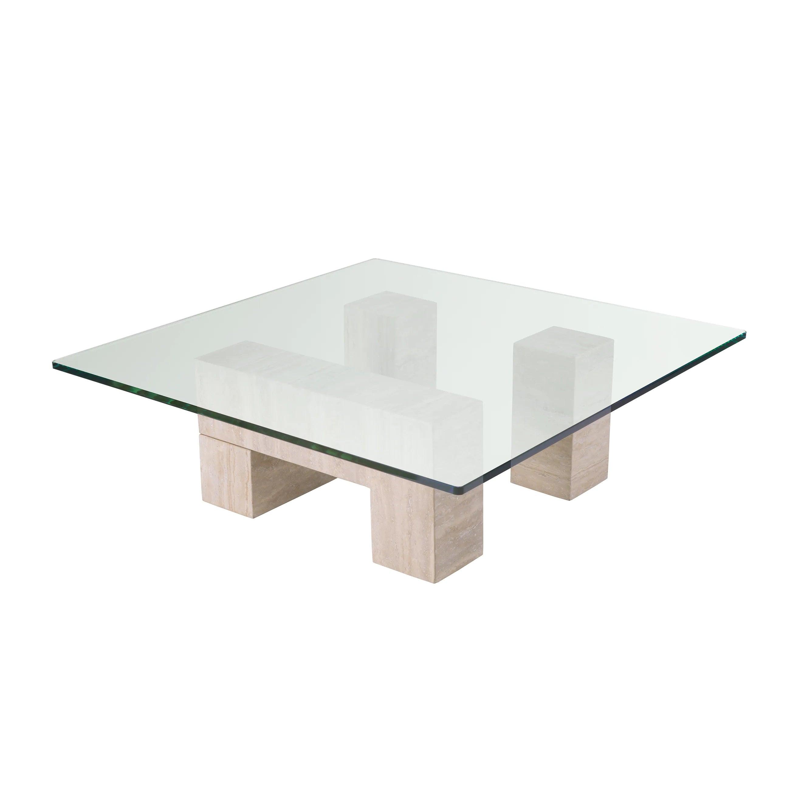 Op deze massieve, maar tegelijkertijd elegante basis rust een blad van doorzichtig glas. Deze eenvoudige materiaalkeuze completeert de compositie, waardoor het geheel een gevoel van lichtheid en visuele ruimte krijgt. Glas overweldigt de ruimte niet, maar laat de schoonheid van het travertijn volledig ervaren.