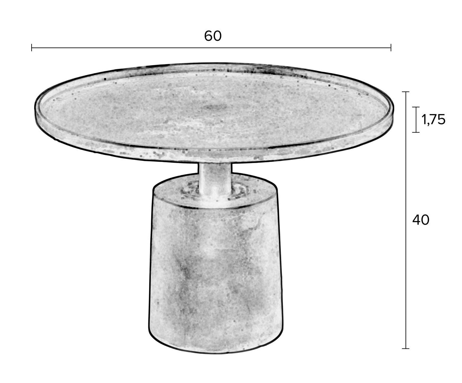 De aluminium basis geeft hem een stevige uitstraling, en het afgeronde blad voorkomt dat voorwerpen eraf glijden. Dit unieke ontwerp maakt de tafel Mason niet alleen praktisch, maar ook een interessant decoratief element dat elk interieur zal verfraaien.