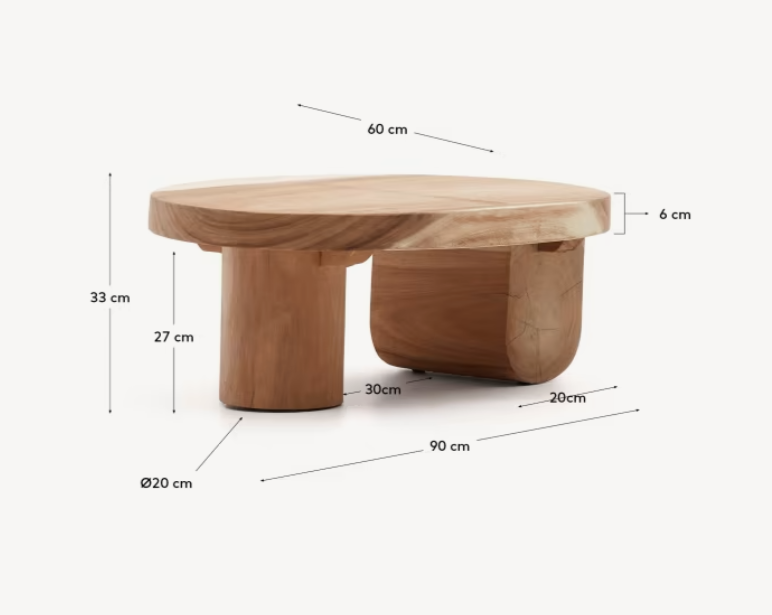 Het massieve mungurhout waaruit de tafel Mosi is vervaardigd, betovert niet alleen met zijn natuurlijke schoonheid, maar is ook een milieuvriendelijke keuze. Het afgeronde blad en de organische lijnen van de tafel vormen een harmonieuze eenheid die perfect samengaat met verschillende interieurstijlen.