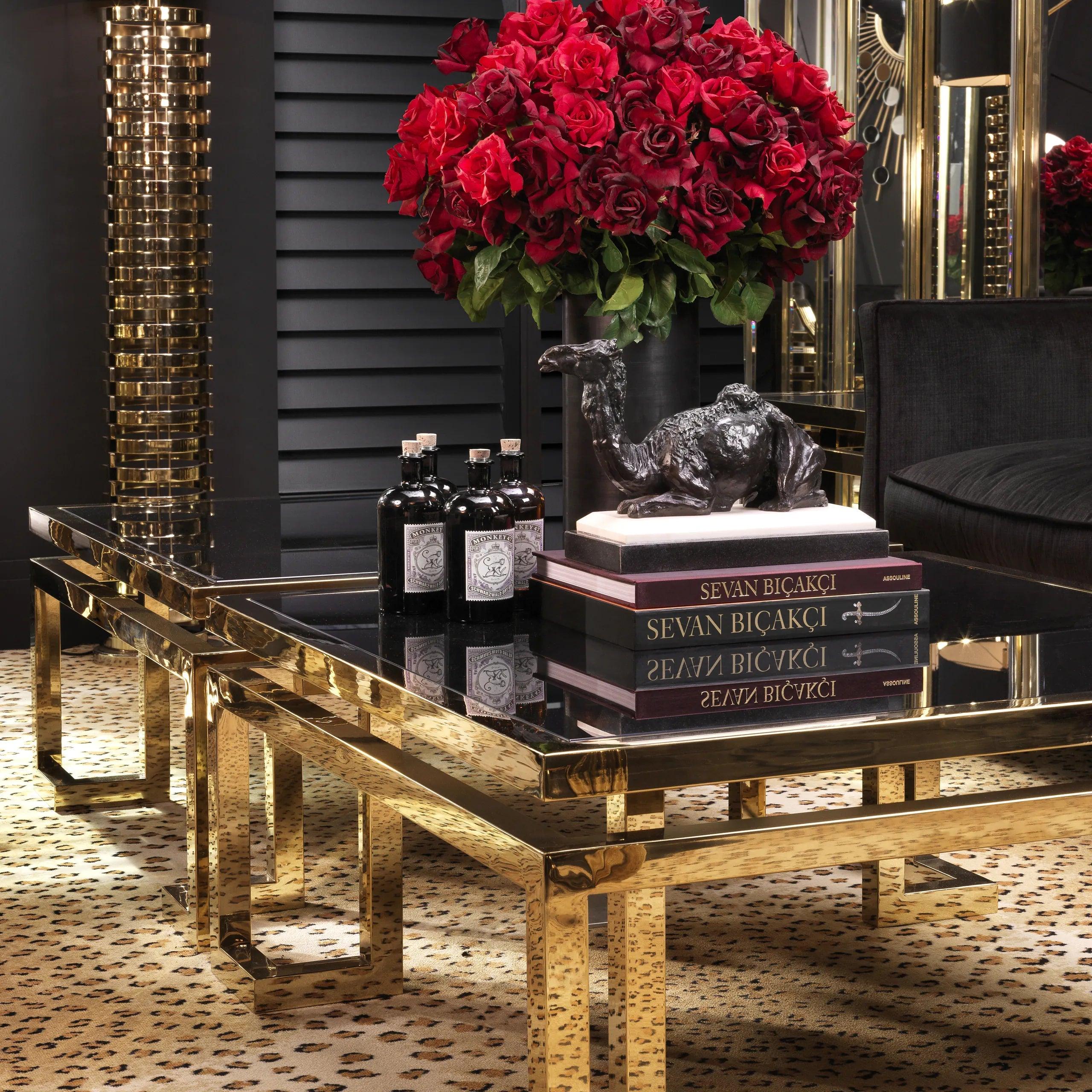 Echter, de ware schoonheid van deze gouden tafel komt pas tot leven wanneer deze wordt gecombineerd met andere decoratieve elementen. Met de Eichholtz collectie, bekend om zijn luxe verlichting en accessoires, kunt u een interieur creëren dat de tijd stilhoudt en herinnert aan het gouden tijdperk van design.