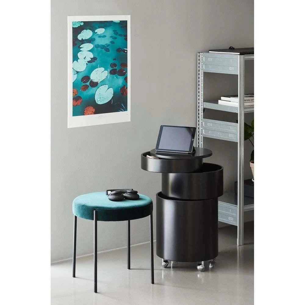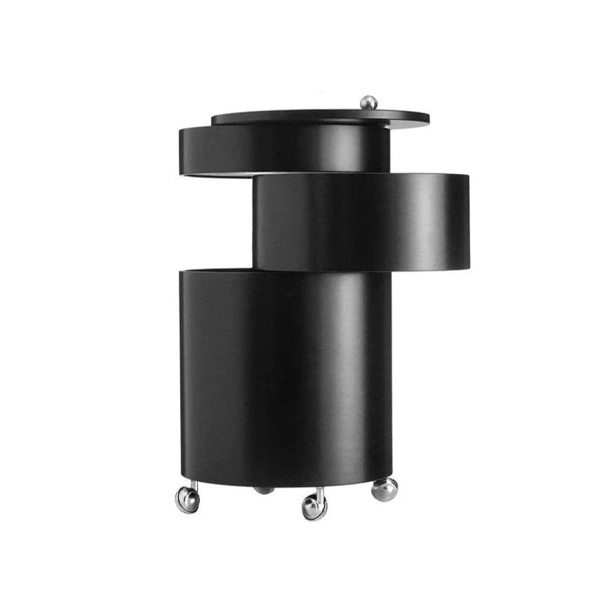 Barboy als bijzettafel en mobiele kast in één. Het bestaat uit drie ronde lades die volledig kunnen worden uitgetrokken, zodat u het volledige oppervlak kunt benutten. De Barboy is een typisch voorbeeld van Panton-meubels, waarin een matte afwerking wordt gecombineerd met een glanzend verchroomde handgreep en wielen, wat de meubels een elegante contrast geeft.