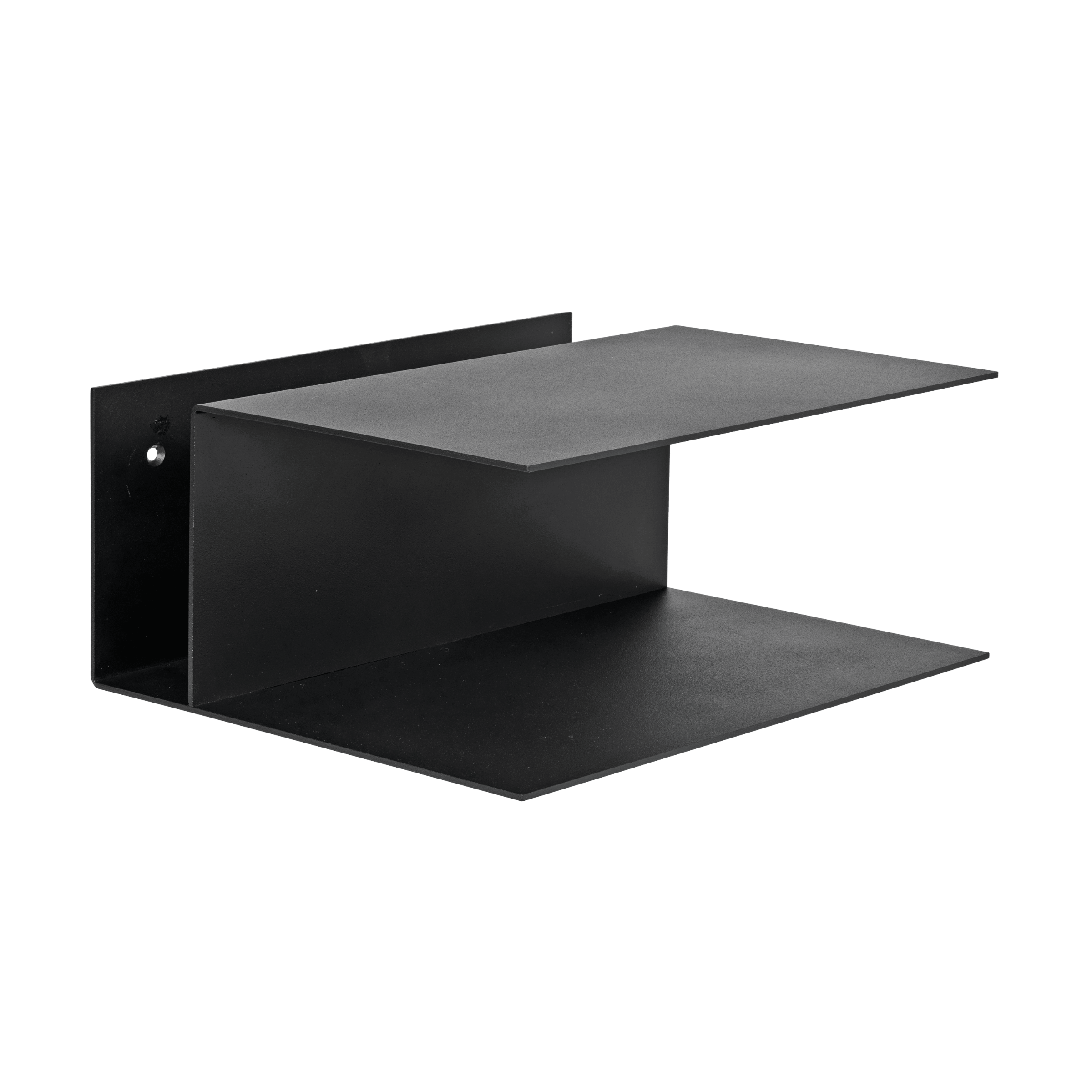 Nachtkastje Lager is een functioneel en stijlvol voorstel, geïnspireerd op brutalistische architectuur en industrieel design. Gemaakt van poedergecoat ijzer, biedt het duurzaamheid en een ruwe, moderne uitstraling. Aan de muur gemonteerd, bespaart het ruimte en houdt het de slaapkamer netjes.