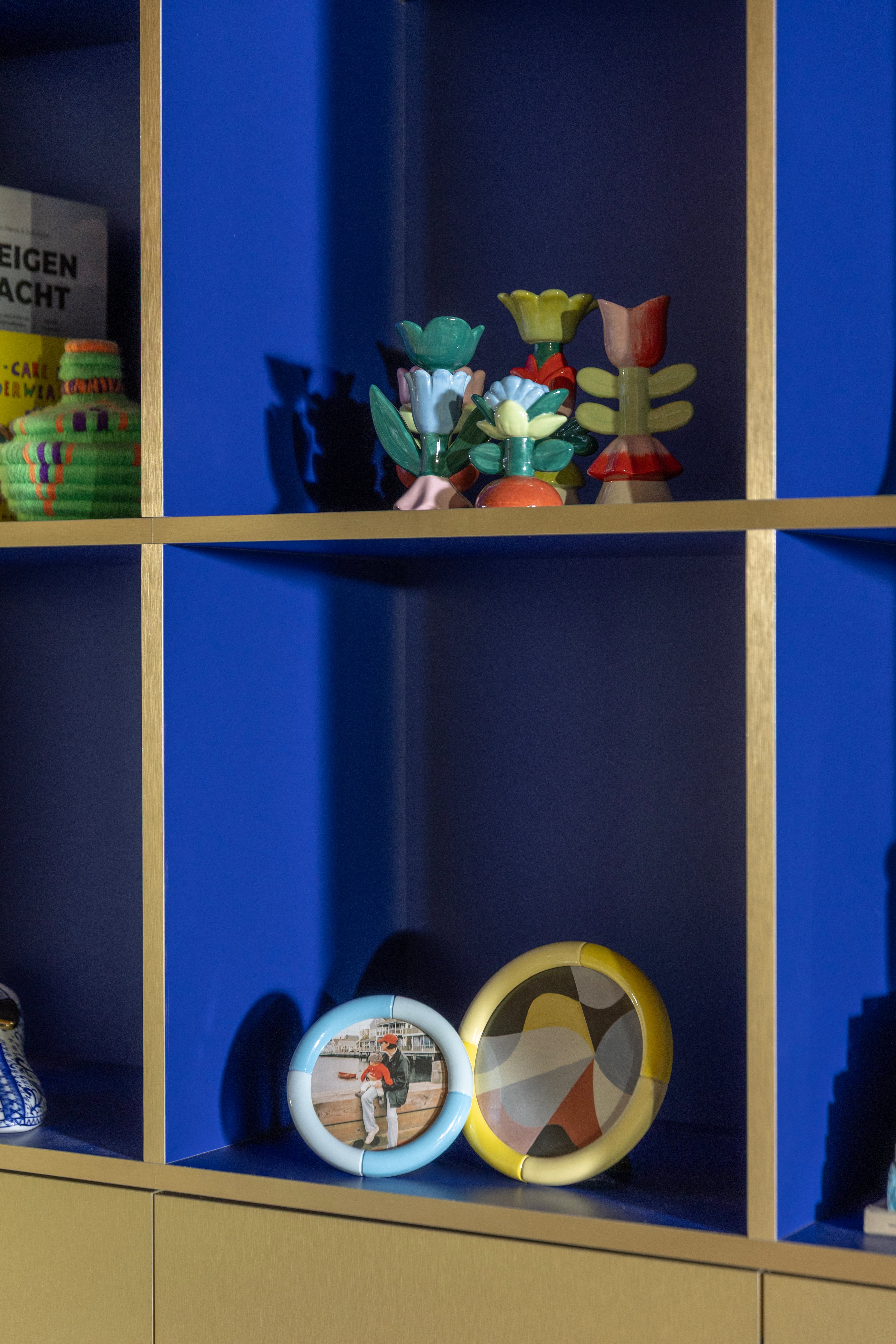 Groene BLUME kaarsenhouder met rood en roze