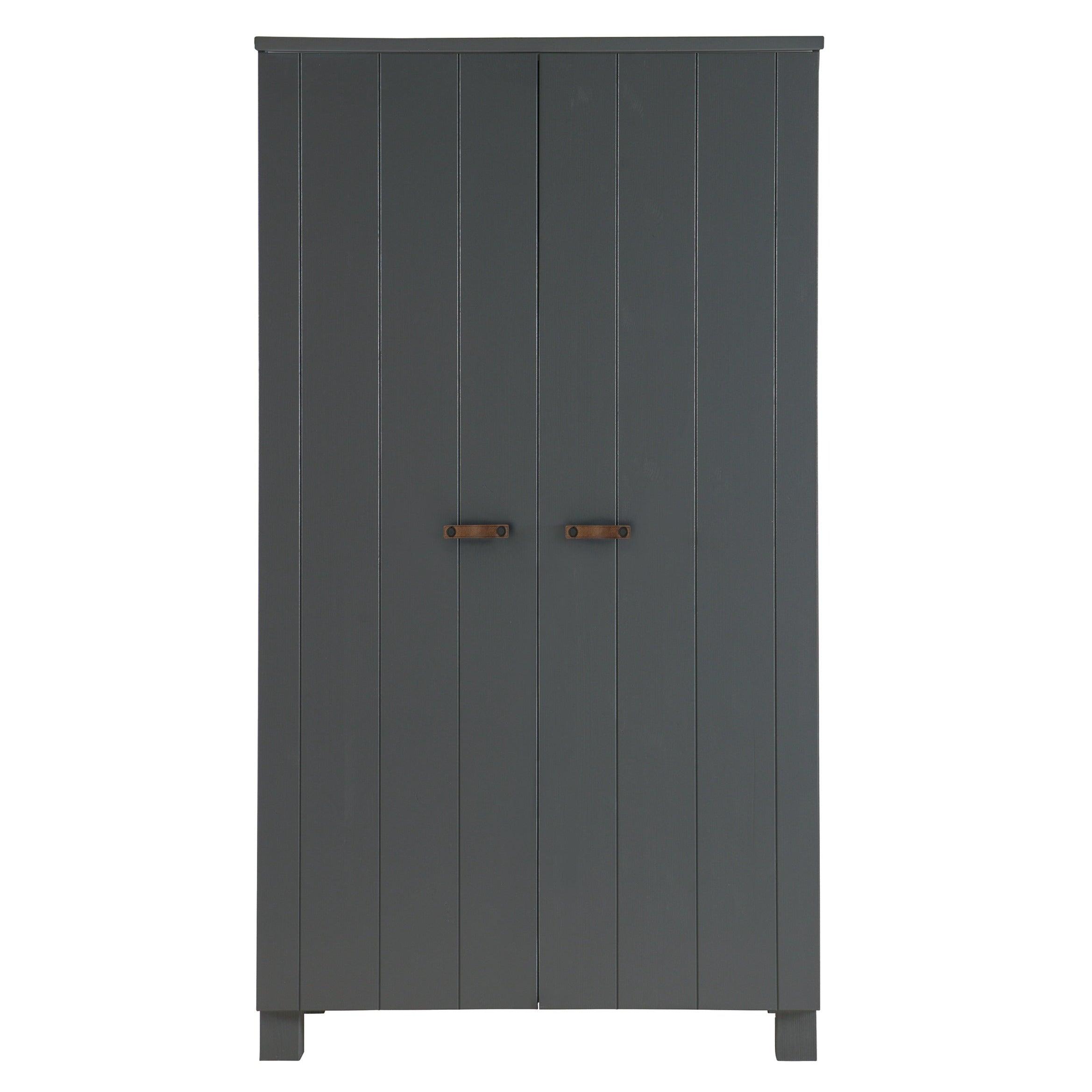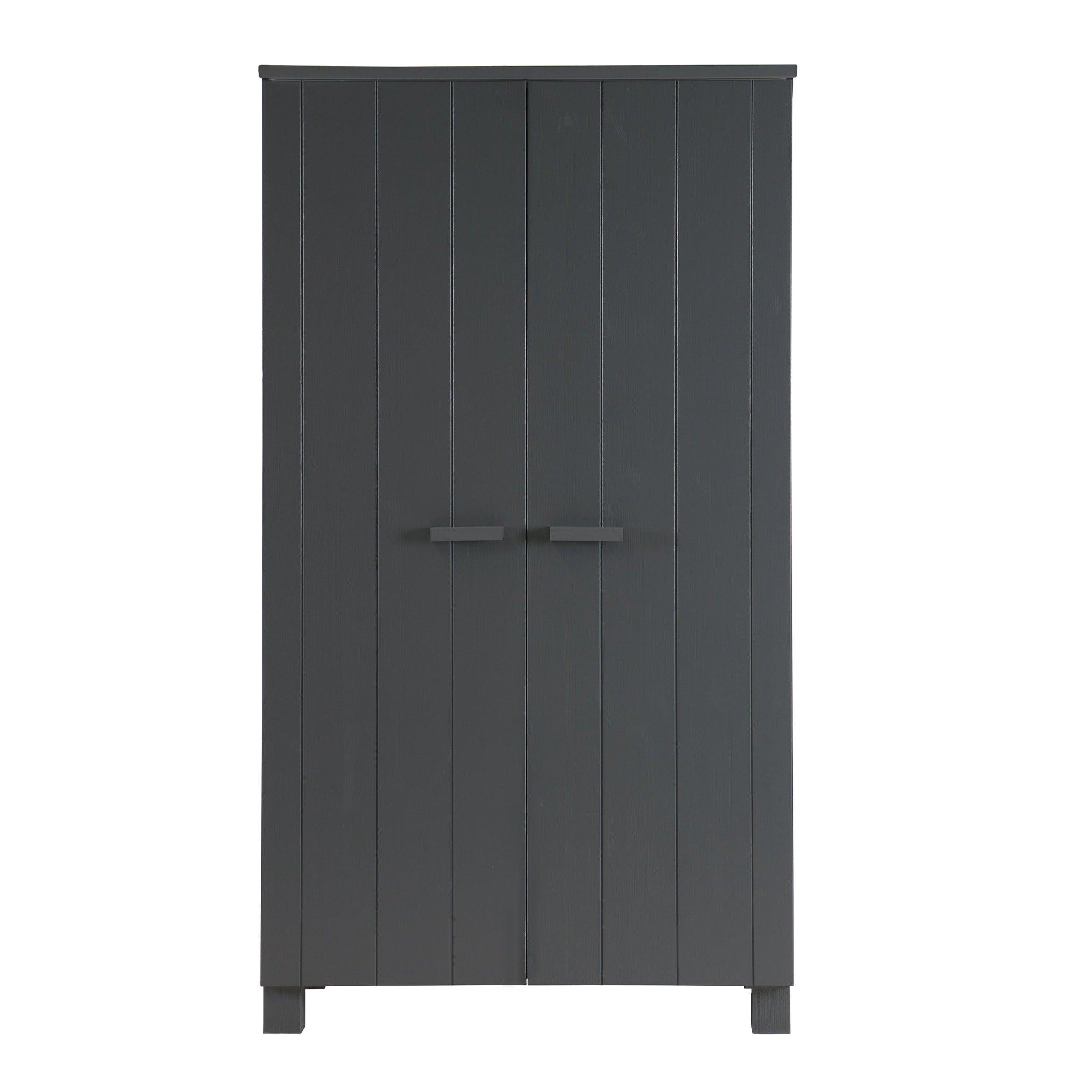 2-deurs kast Dennis in grafietkleur is de ideale combinatie van eenvoud, functionaliteit en Scandinavisch design. Dankzij zijn compacte afmetingen past hij perfect in kleinere ruimtes, waardoor ze een gevoel van lichtheid en frisheid krijgen.