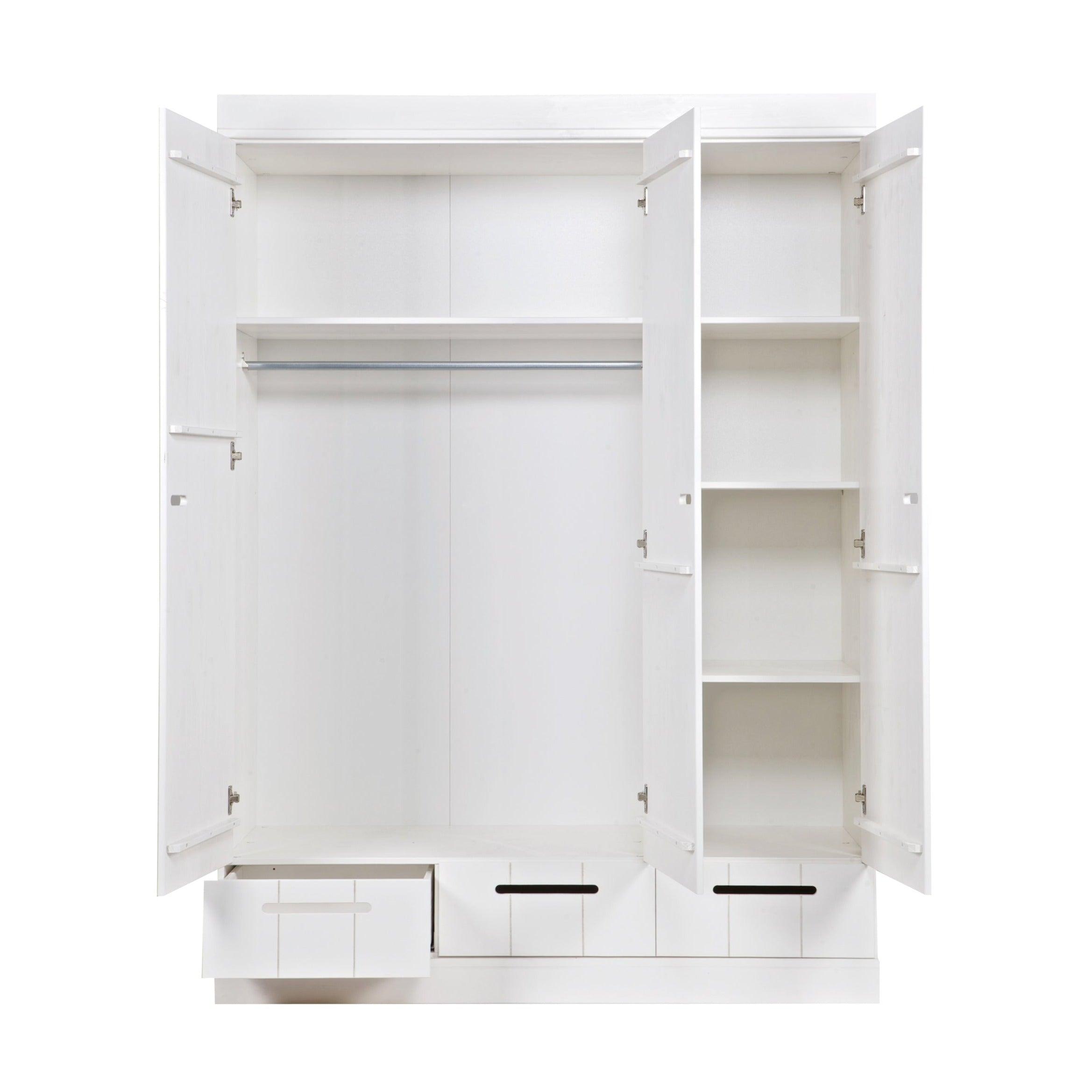 Szafa 3-drzwiowa Connect szufladami w kolorze białym to idealne połączenie prostoty, funkcjonalności i stylu skandynawskiego. Dzięki swoim kompaktowym rozmiarom, świetnie sprawdzi się w mniejszych przestrzeniach, dodając do nich lekkości i powiewu świeżości.