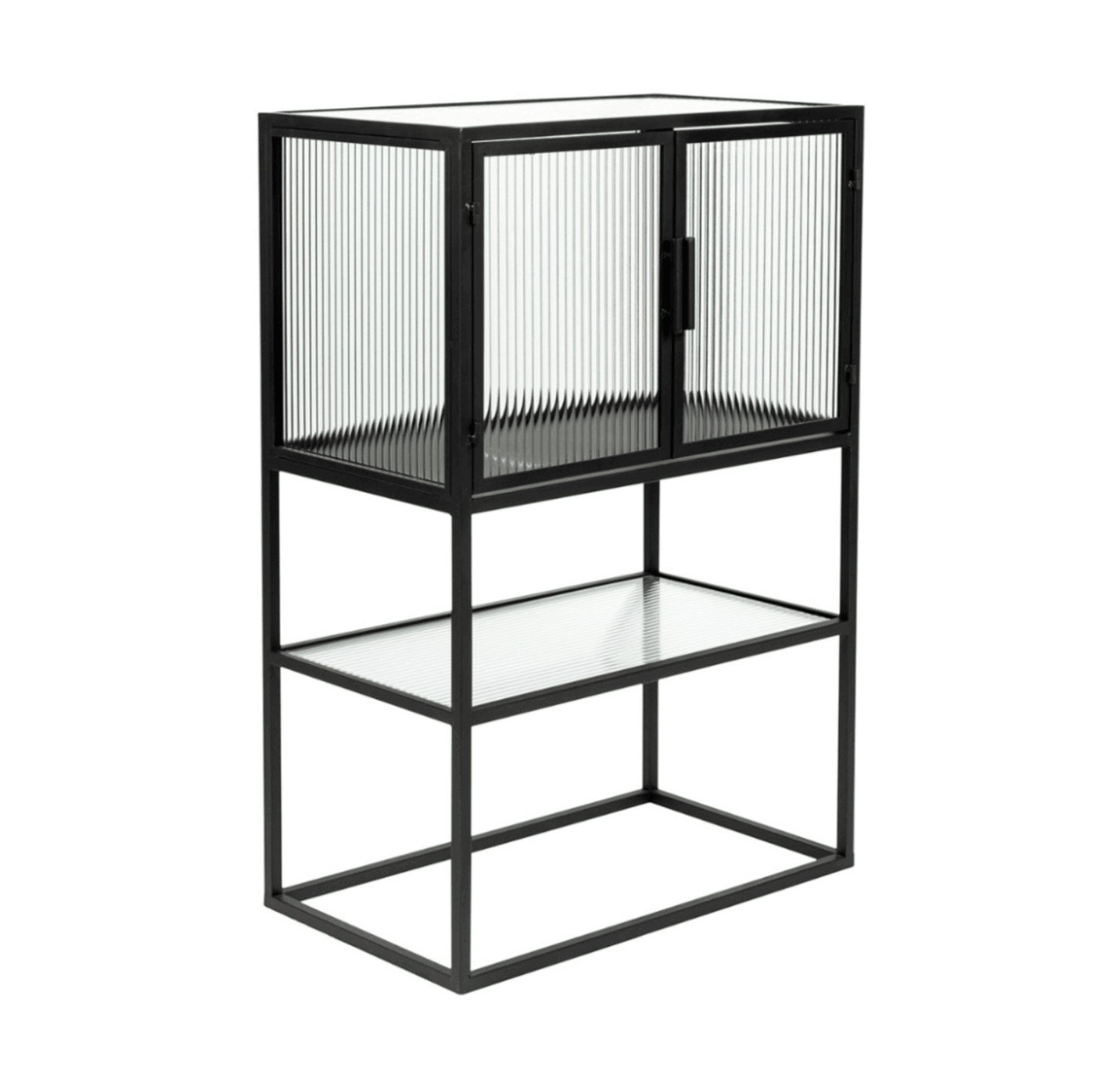 Stijlvol, elegant en een beetje industrieel, de kast Boli is een subtiele aanvulling op uw interieur, die perfect samengaat met bijna elke levensstijl. Ideaal voor het tentoonstellen van opvallende accessoires en unieke vondsten. Een unieke eigenschap van deze serie is het geribbelde glas, dat een verbluffend effect creëert en tegelijkertijd een retro accent toevoegt.