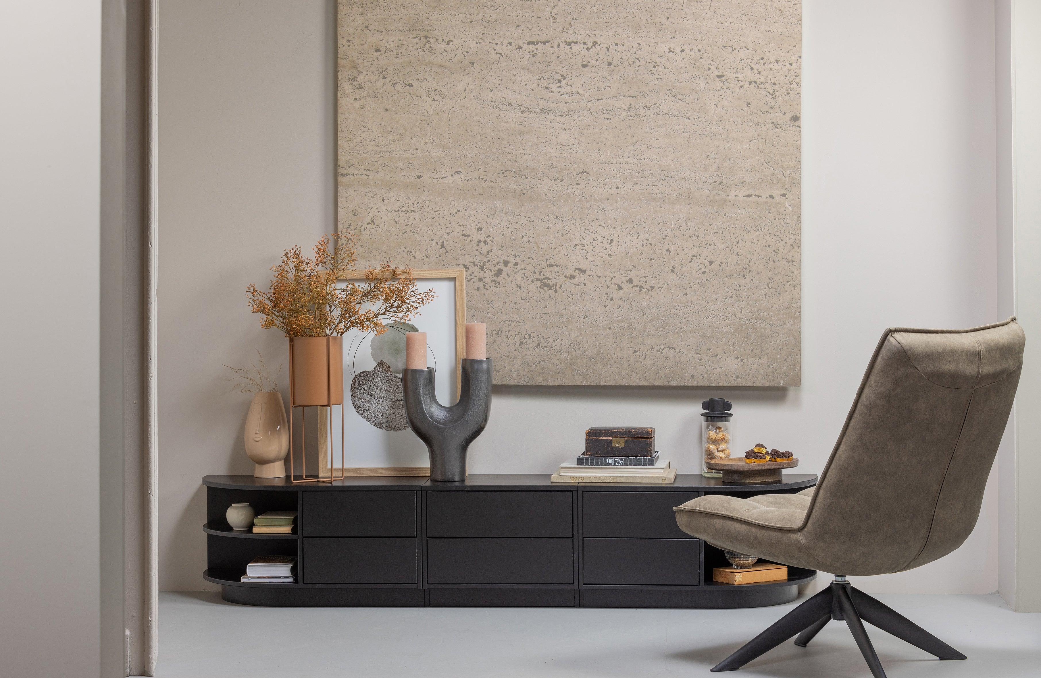 De kast Fianca is gemaakt van gecertificeerd grenenhout en afgewerkt in diep zwart. Dit unieke meubelstuk combineert klassiek en modern, waardoor een stijlvolle eenheid ontstaat, terwijl het tegelijkertijd veel ruimte biedt voor het opbergen van de mooiste accessoires.