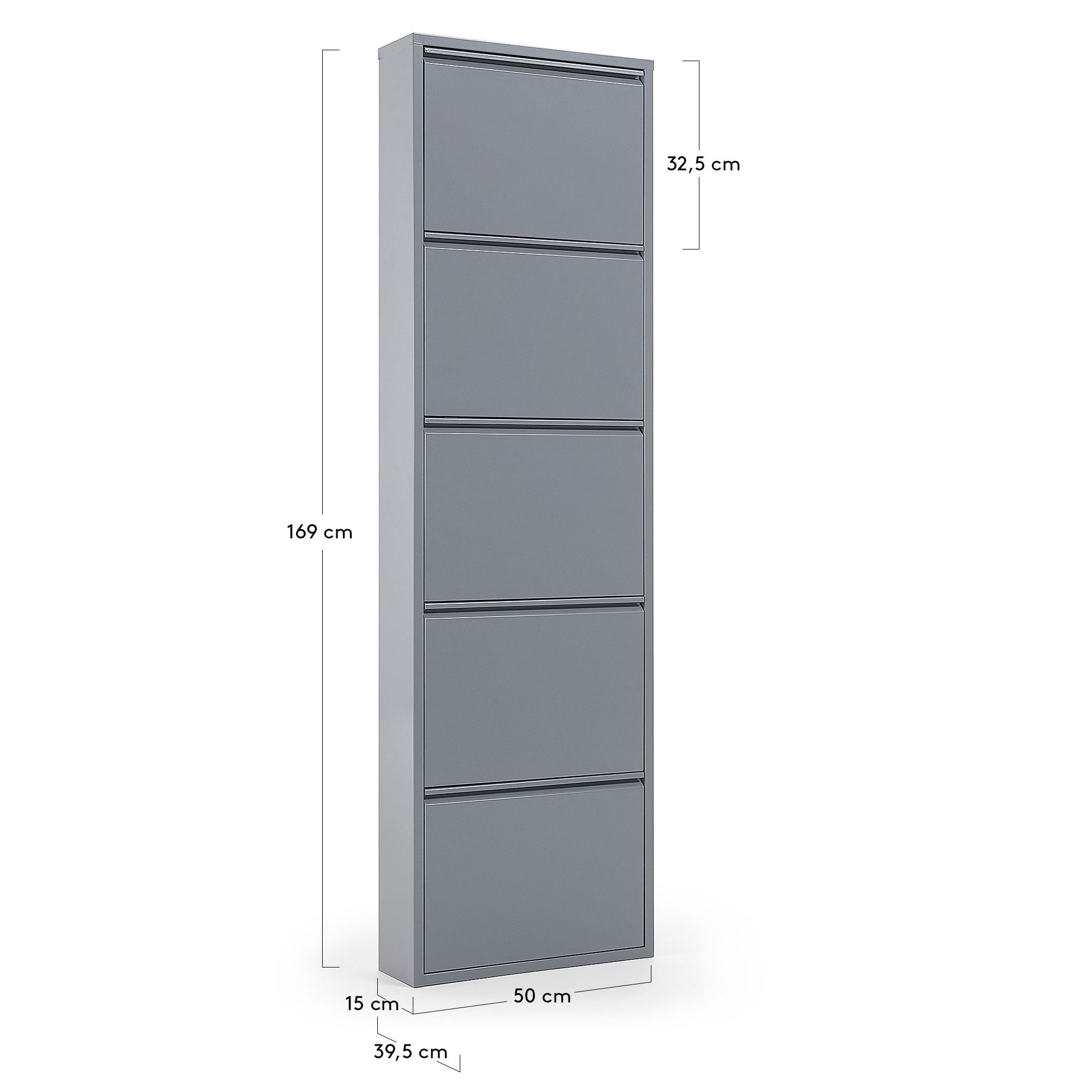 Schoenenkast Ode in de kleur wit is een verfijnde kast, volledig gemaakt van metaal, wat zorgt voor stevigheid en duurzaamheid. Bestemd voor het opbergen van verschillende soorten schoeisel, presenteert het zich als een uitstekende oplossing voor degenen die waarde hechten aan orde en een elegante afwerking van het interieur.