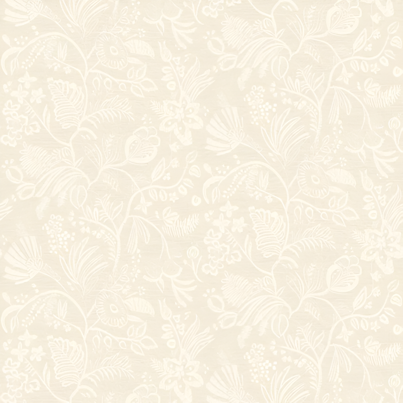 Structuurtapijt dat borduurwerk imiteert met een plantmotief van bloemen en bladeren PASTEL ivoor