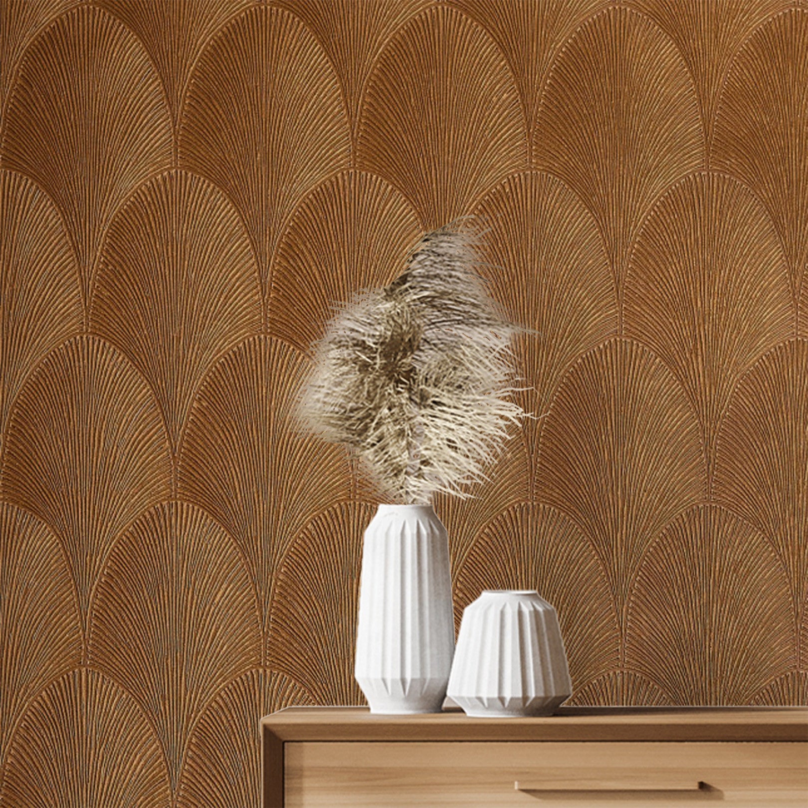 Metallische behang met abstract patroon TOURMALINE - AMBRE amberkleurig