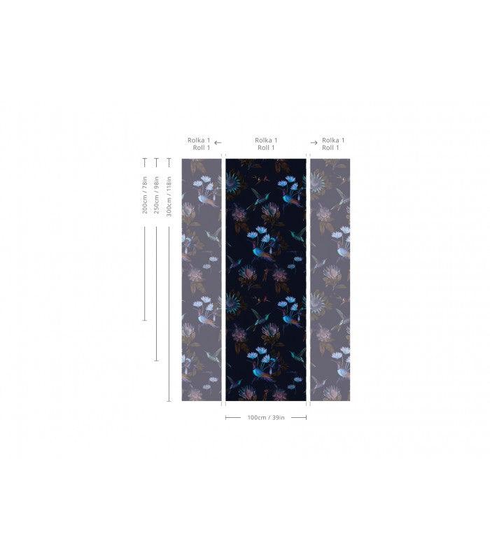 Vliesbehang met dierenmotief TOXIC HUMMINGBIRDS marineblauw