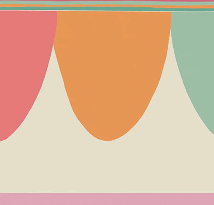 Behang Scaramouche, die een carnavalsvlag voorstelt, is ontworpen om een vleugje decoratieve details toe te voegen. De kleurrijke en levendige tinten van het kleurenpalet en het patroon dat doet denken aan een ruches zijn weer een inspiratie uit het kleurrijke carnaval.