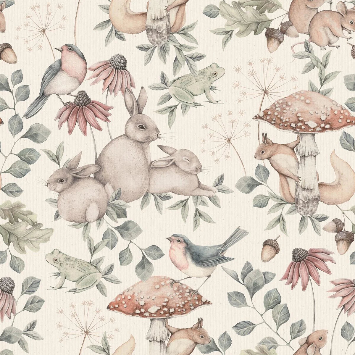 Behang met plantenmotief bloemen TUVA khaki met crème
