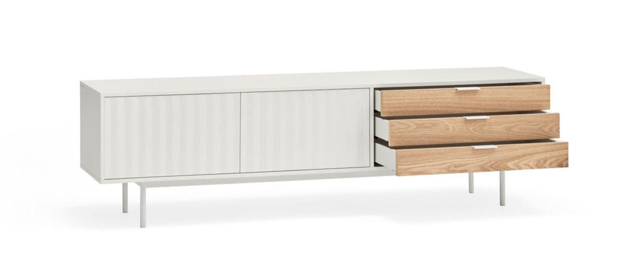 Zoals de meeste ontwerpen van het Spaanse merk Teulat, kenmerkt de TV-kast Sierra zich door een hoge kwaliteit van afwerking en het behoud van klassieke vormen. De combinatie van wit en hout geeft de kast een moderne, maar tegelijkertijd gezellige uitstraling.
