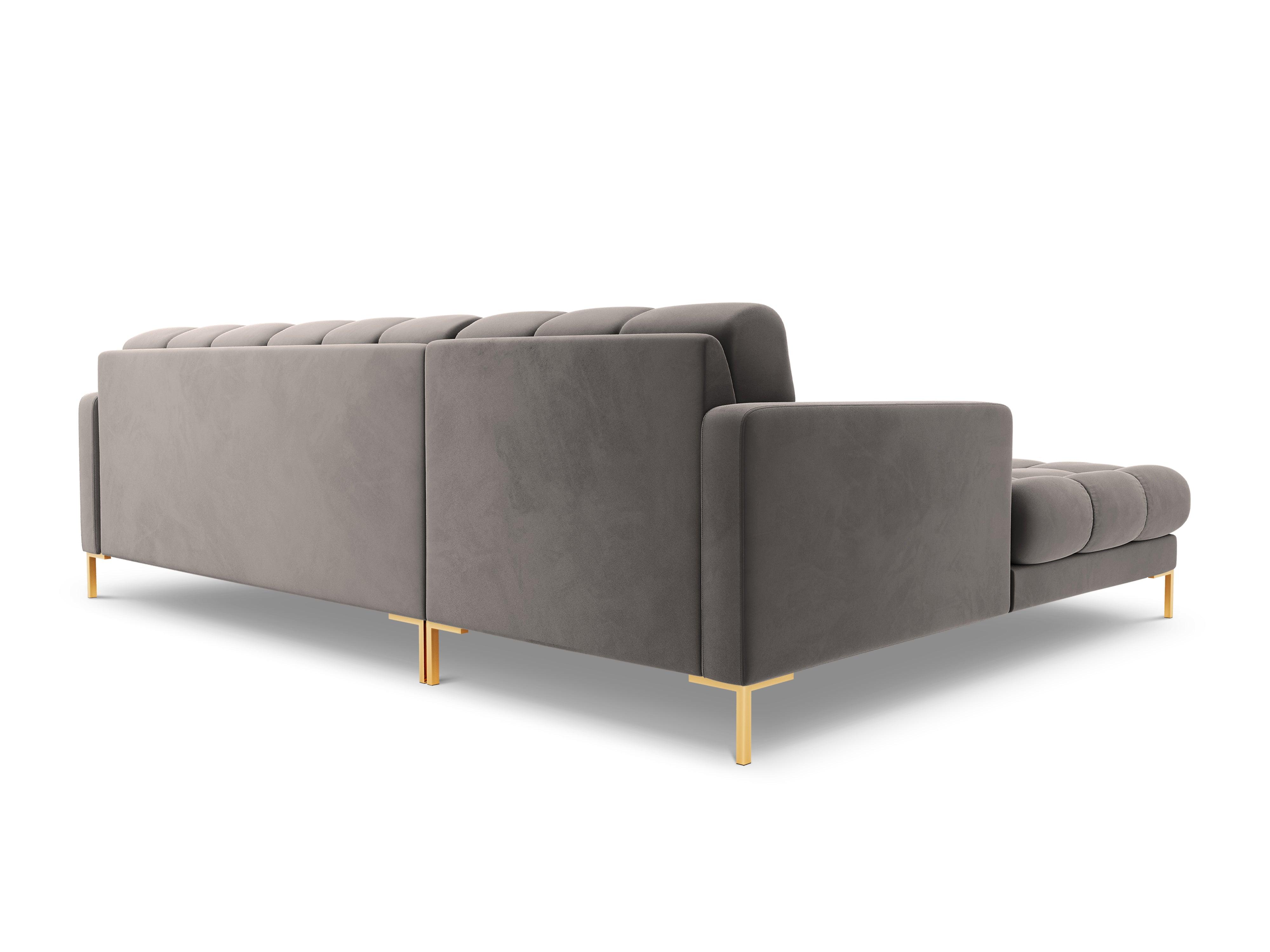 Fluwelen hoekbank links BALI lichtgrijs met gouden basis