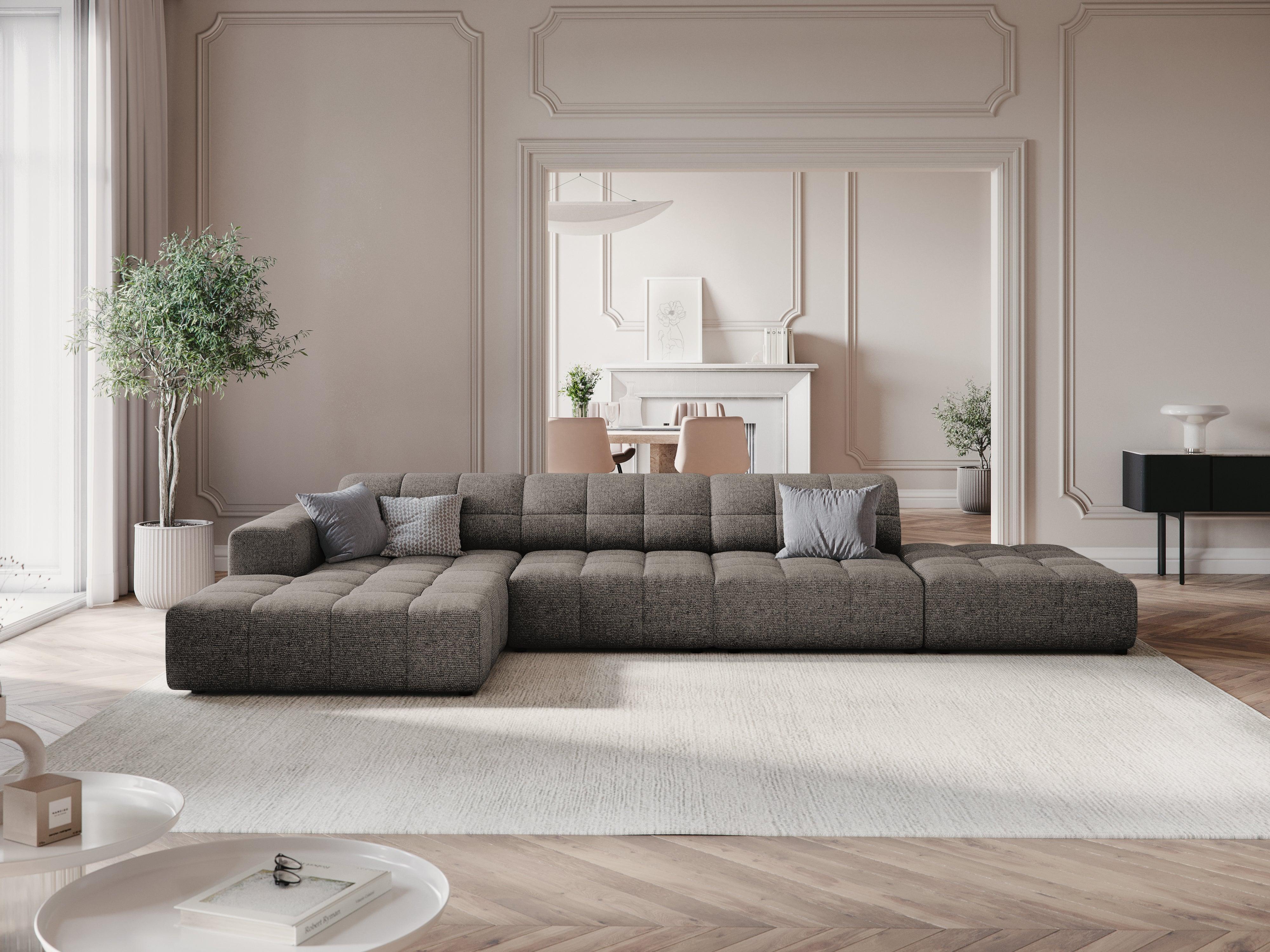 Grijze chenille linkszijdige 5-persoons hoekbank CHICAGO