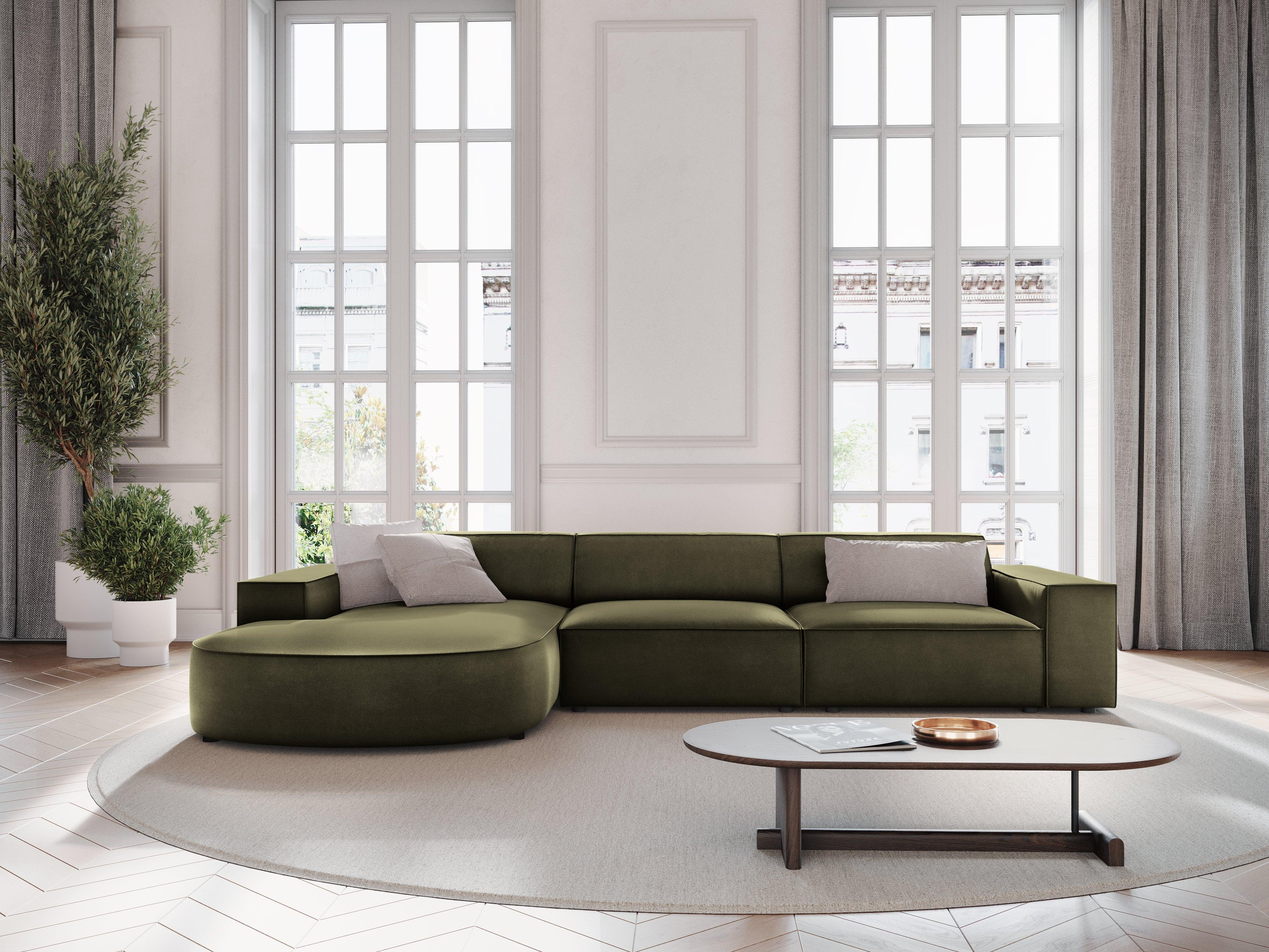 Groene ronde fluwelen linkerhoekbank voor 4 personen JODIE
