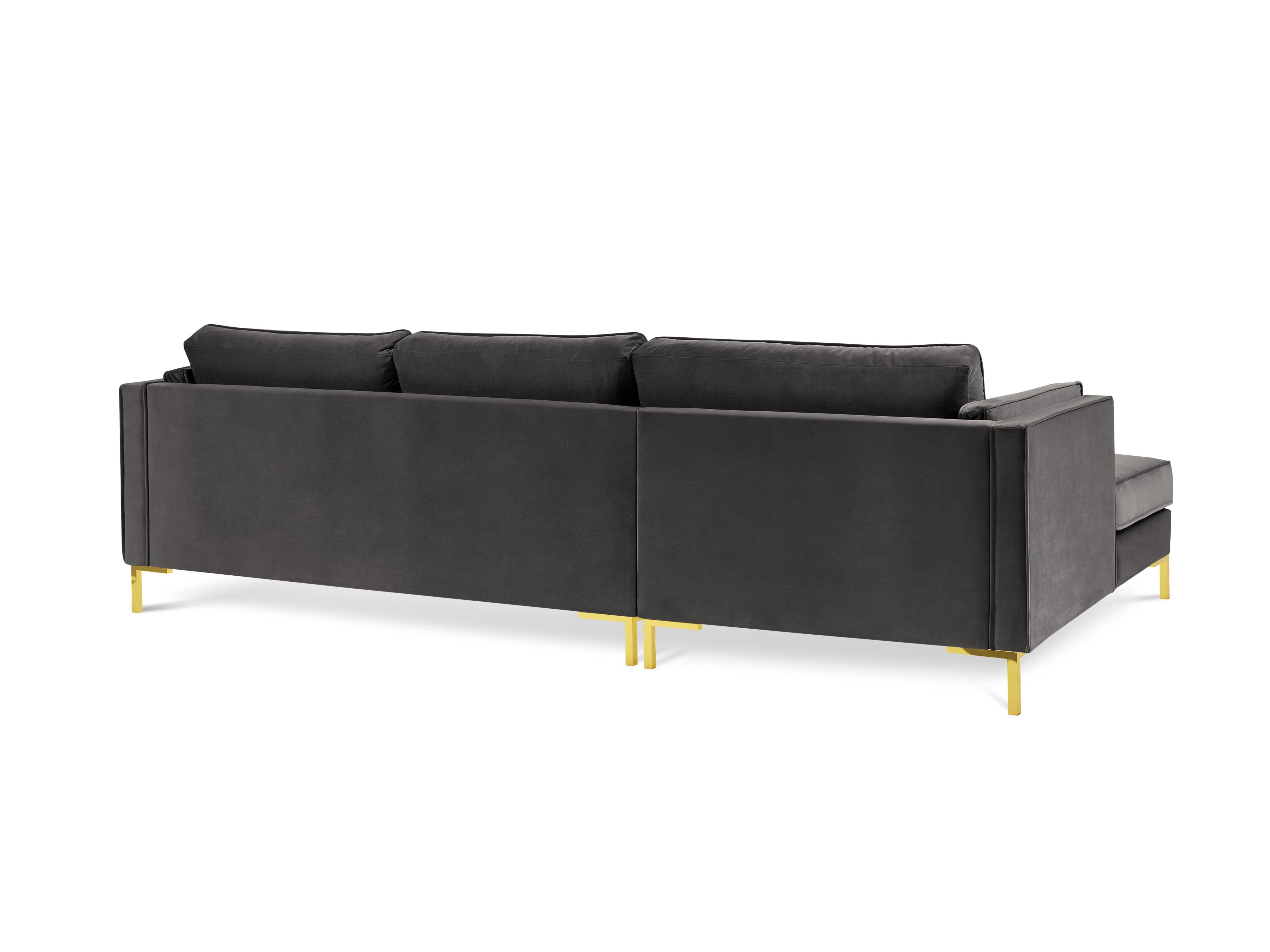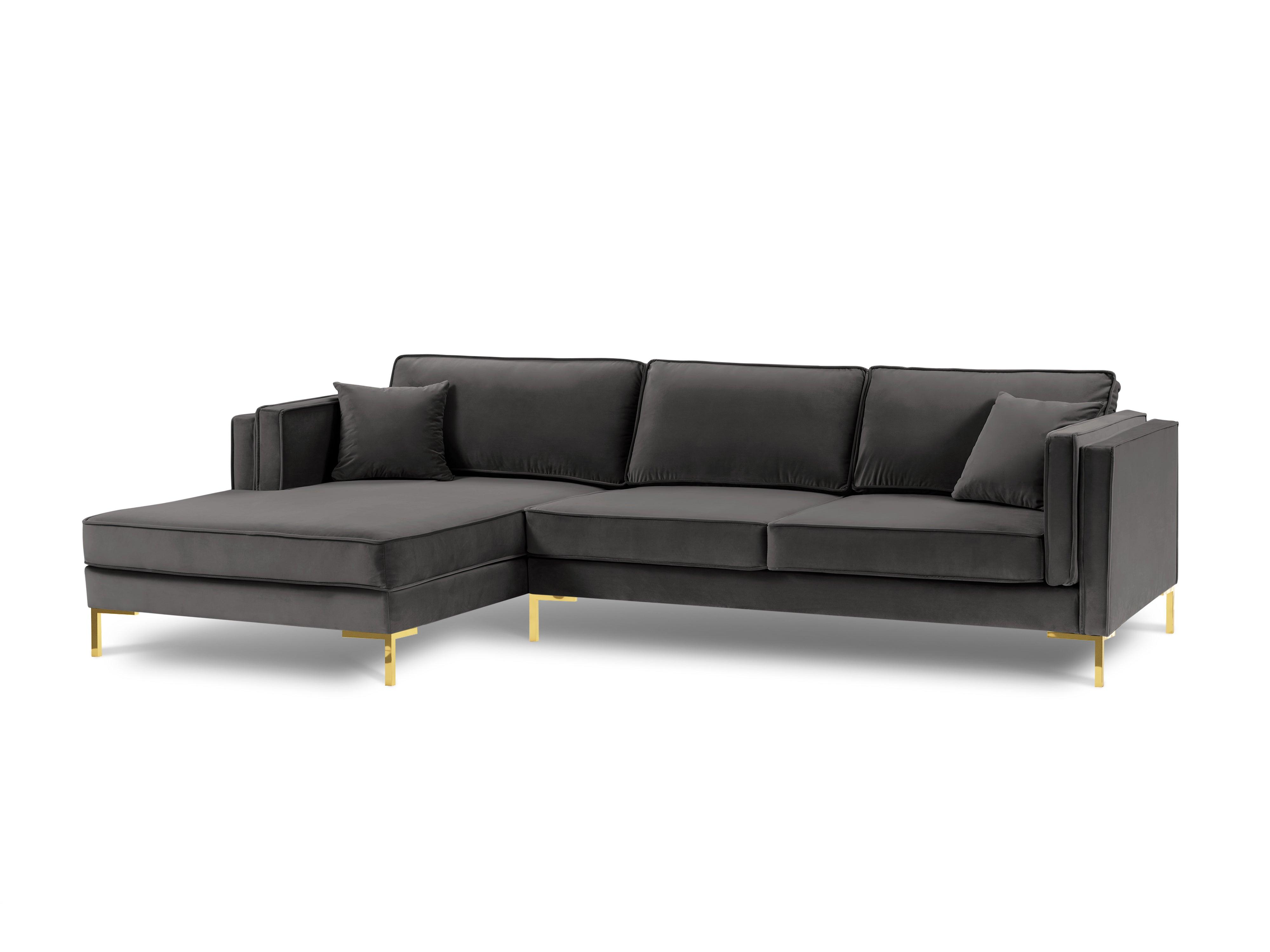 Fluwelen hoekbank LUIS linkszijdig donkergrijs met gouden basis