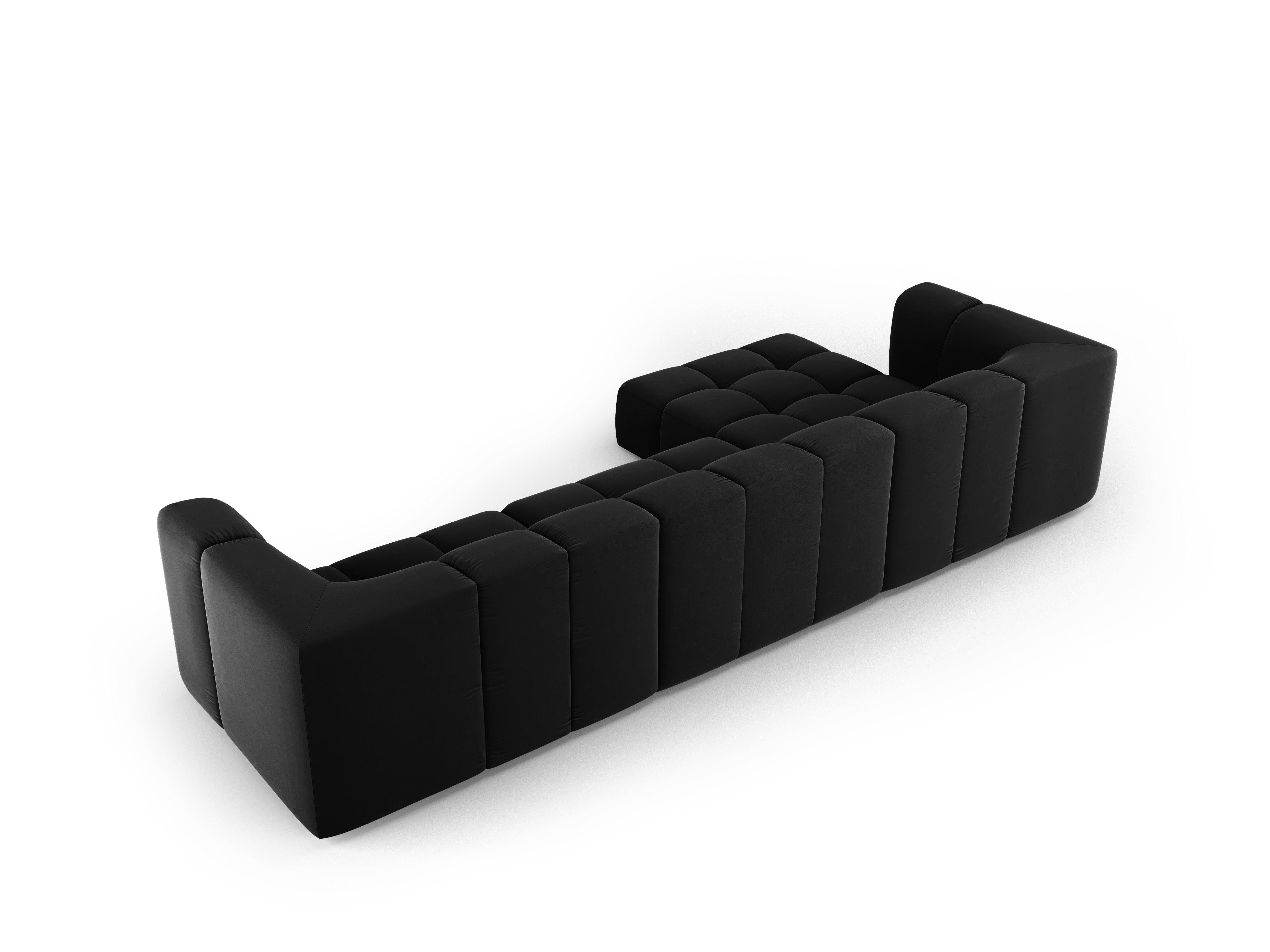 Fluwelen hoekbank voor 5 personen, links FRANCESCA, zwart