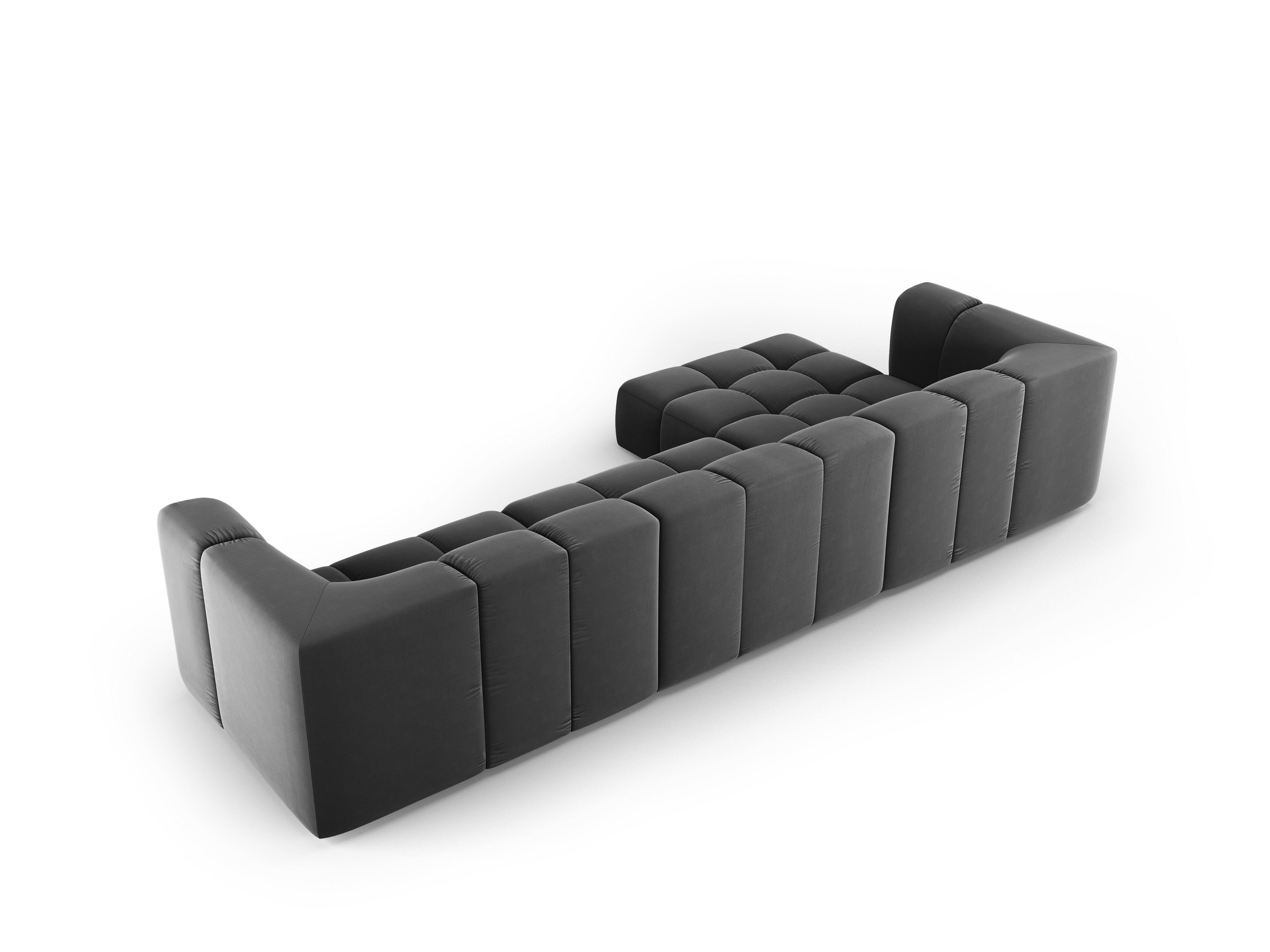Grijze 5-persoons linkszijdige fluwelen hoekbank FRANCESCA
