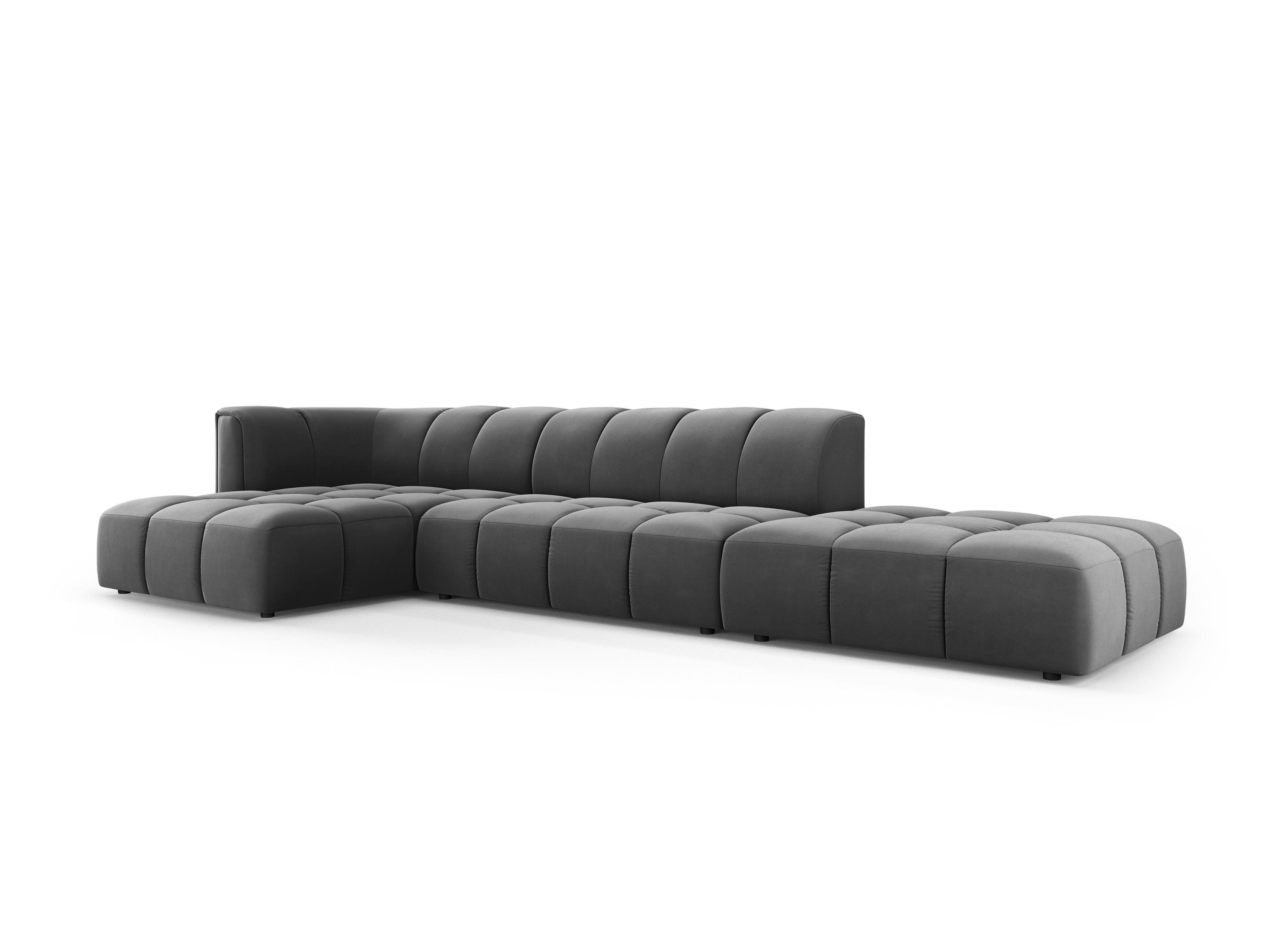 Grijze open linkszijdige fluwelen hoekbank voor 5 personen FRANCESCA