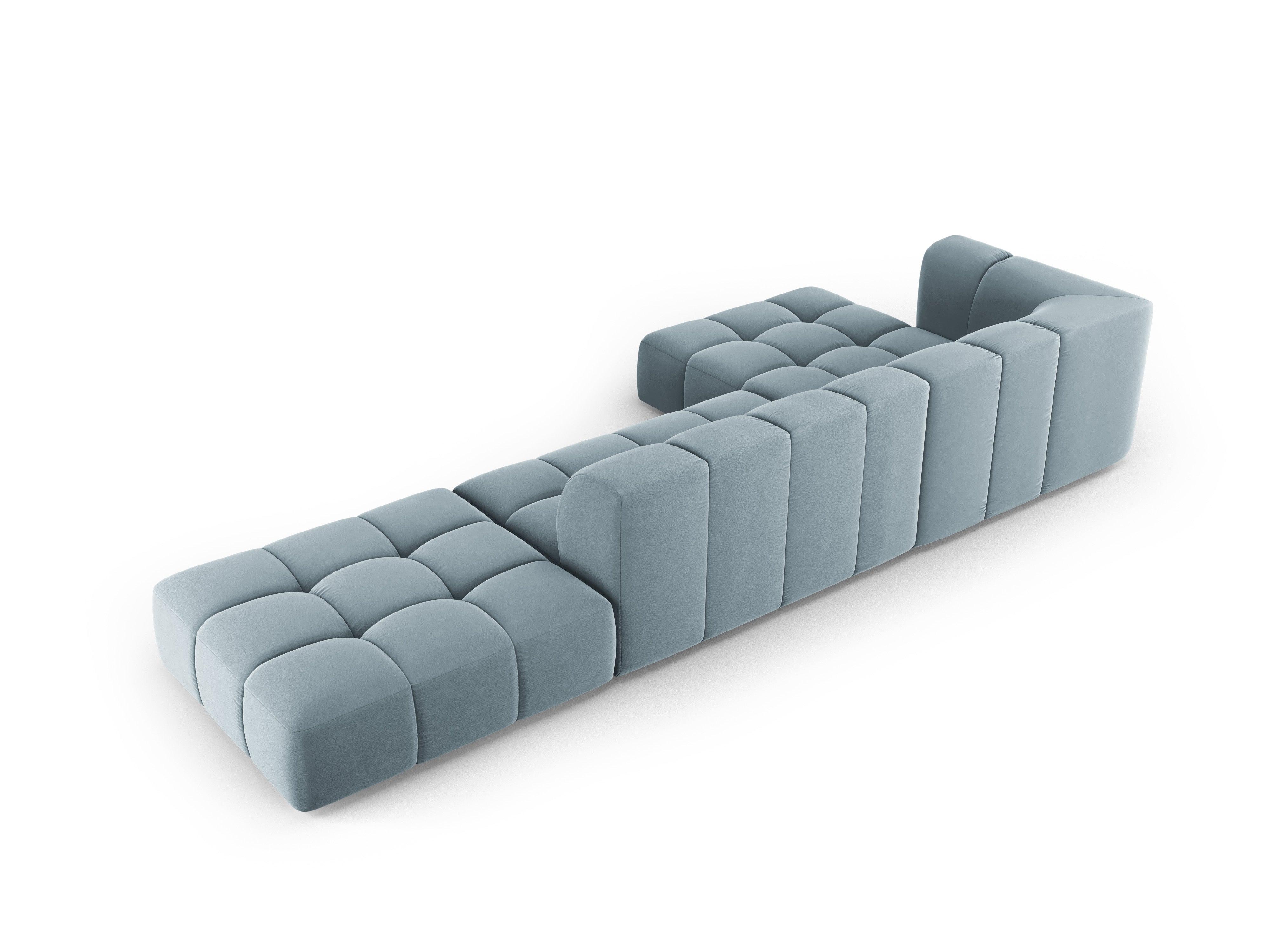 Velours hoekbank voor 5 personen, links open FRANCESCA lichtblauw