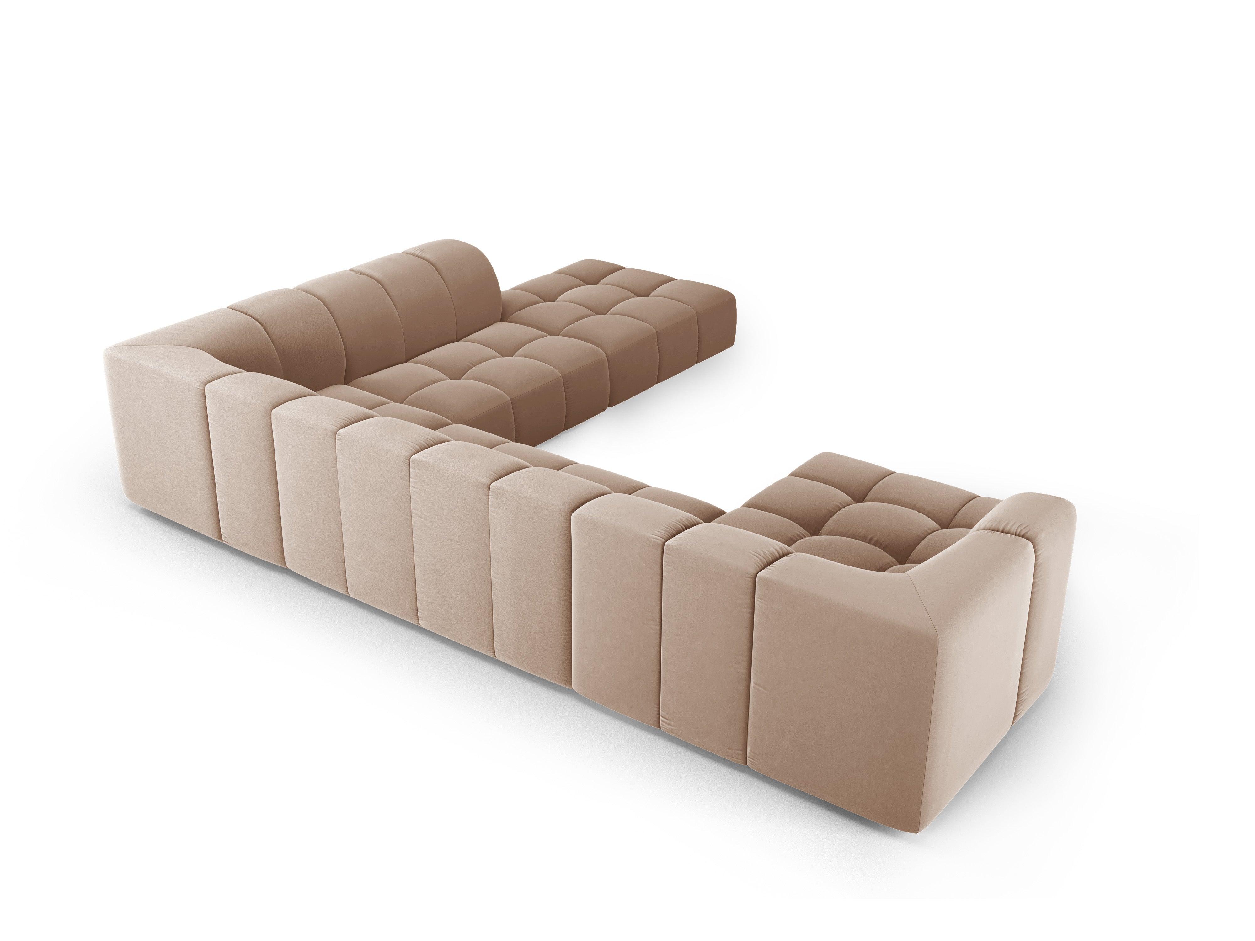 Panoramische fluwelen hoekbank rechts FRANCESCA beige