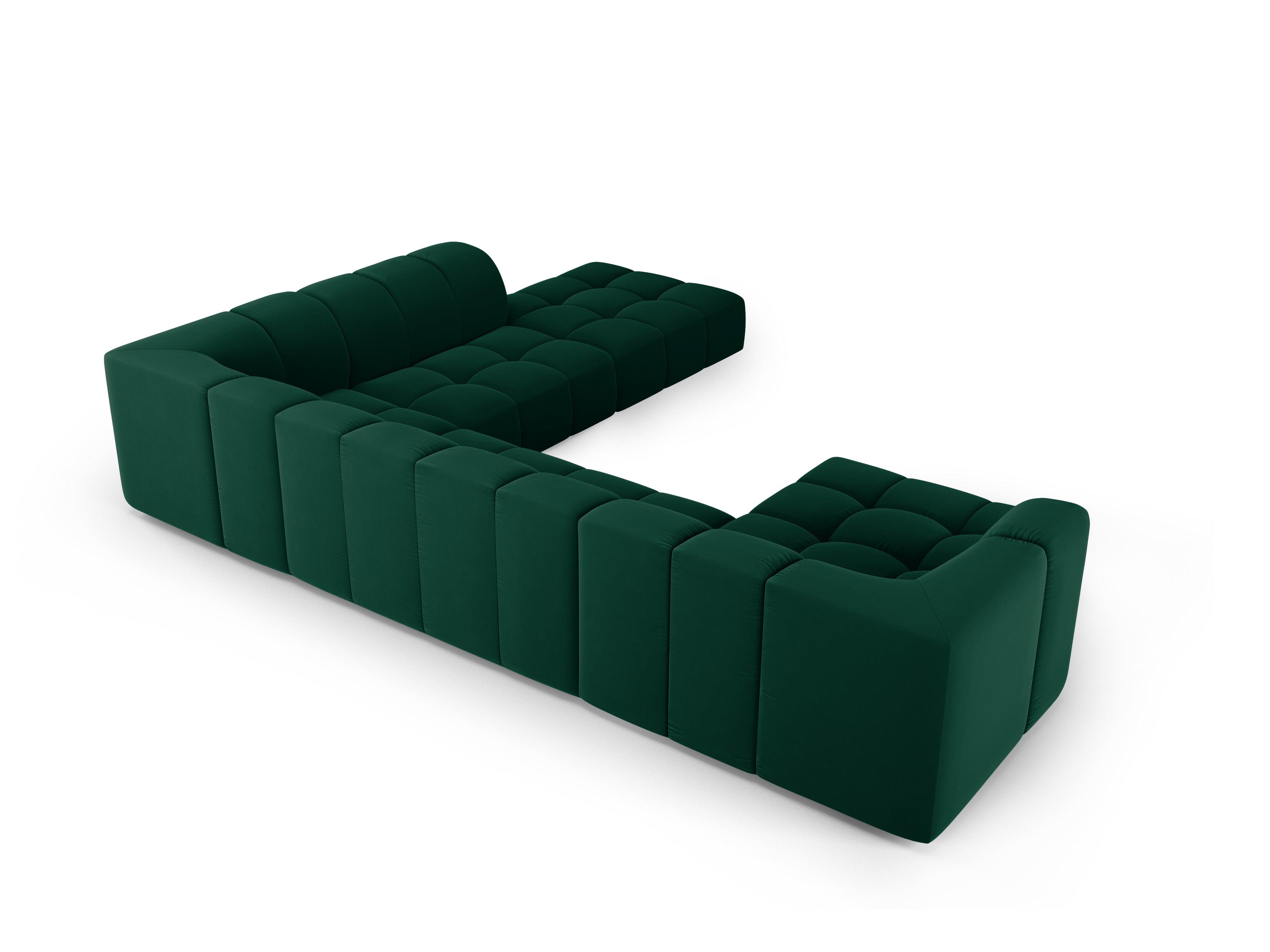 Panoramisch fluwelen hoekbank rechts FRANCESCA in flesgroen