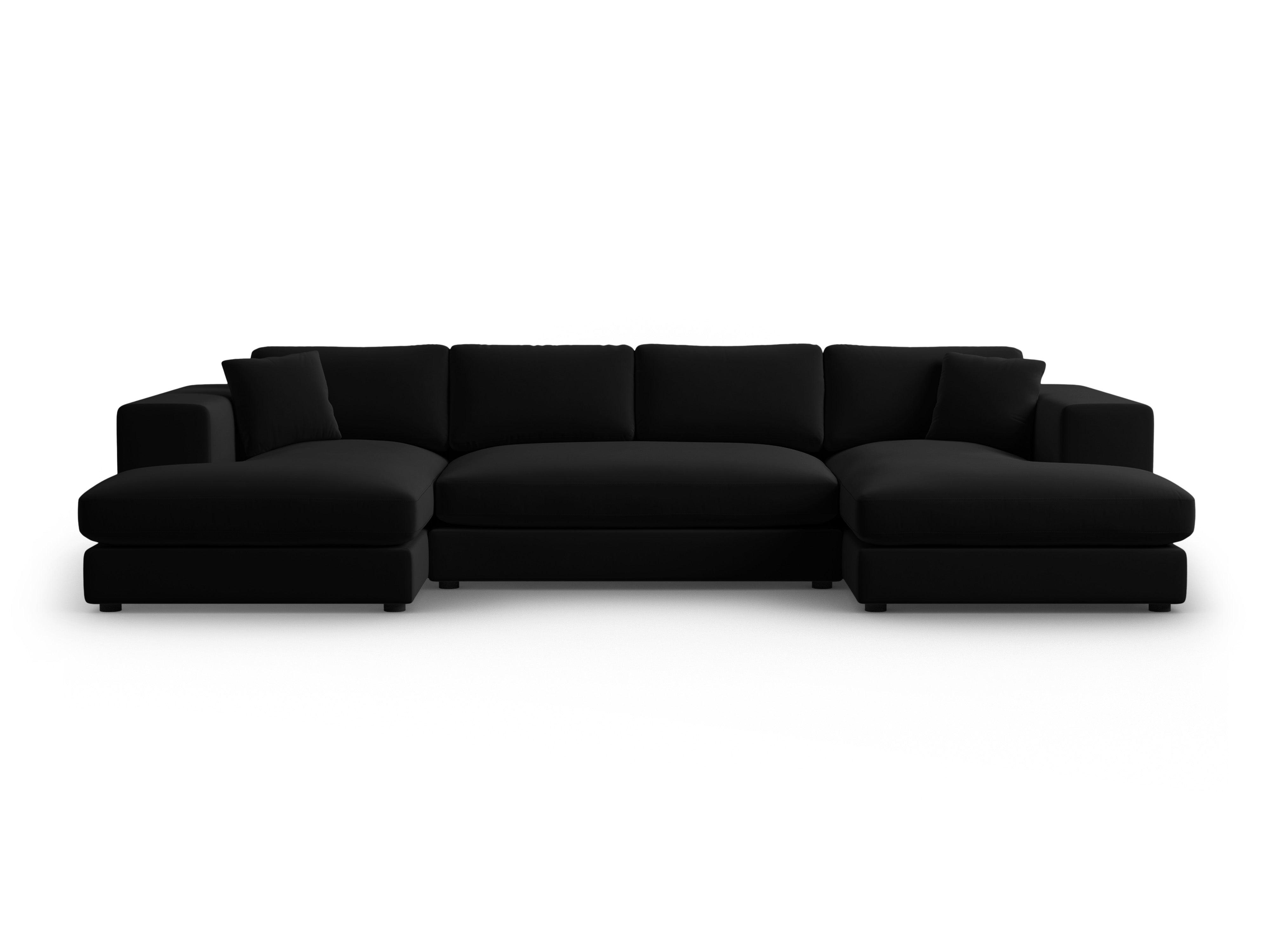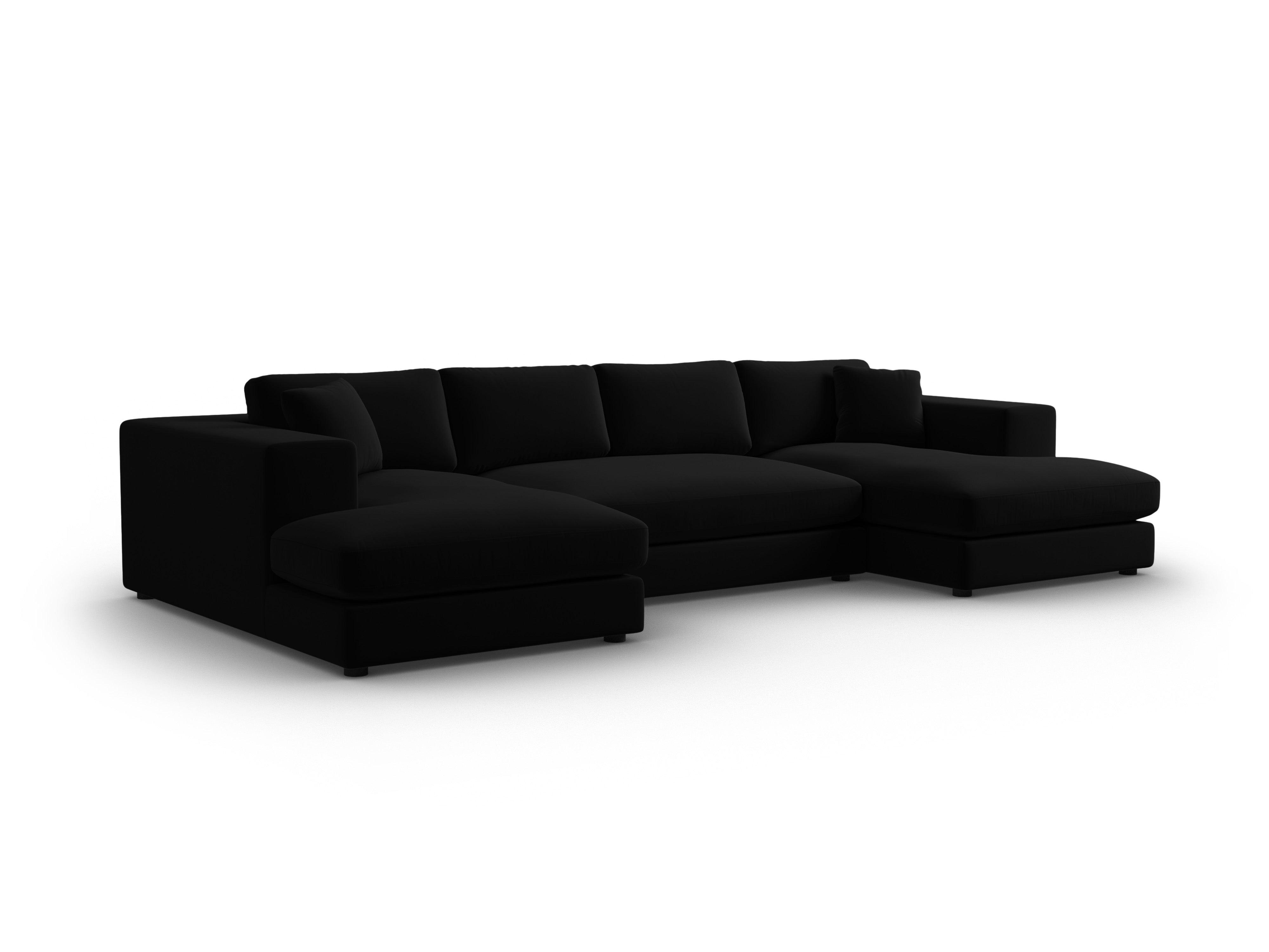 Panoramische fluwelen hoekbank TENDANCE zwart