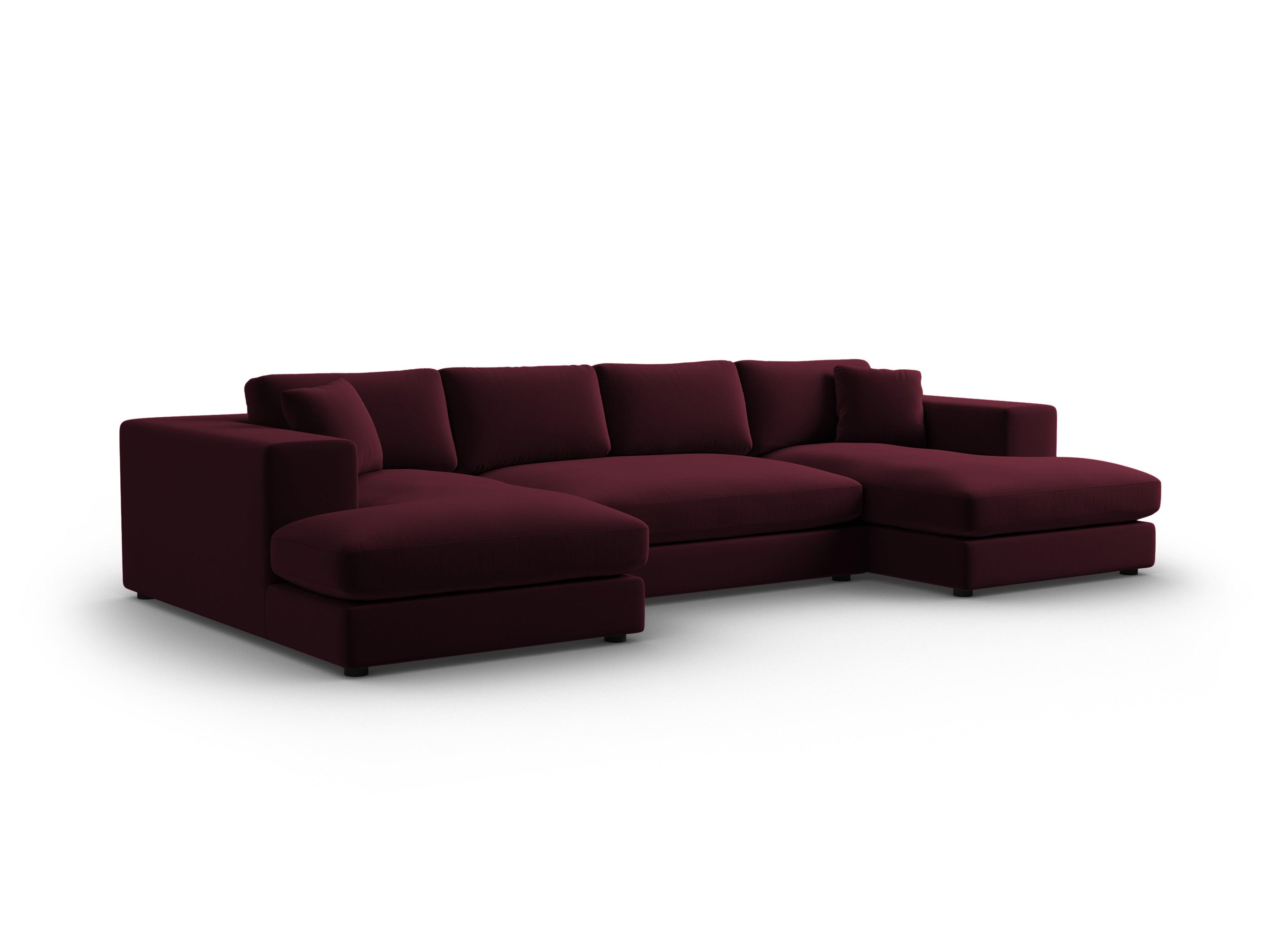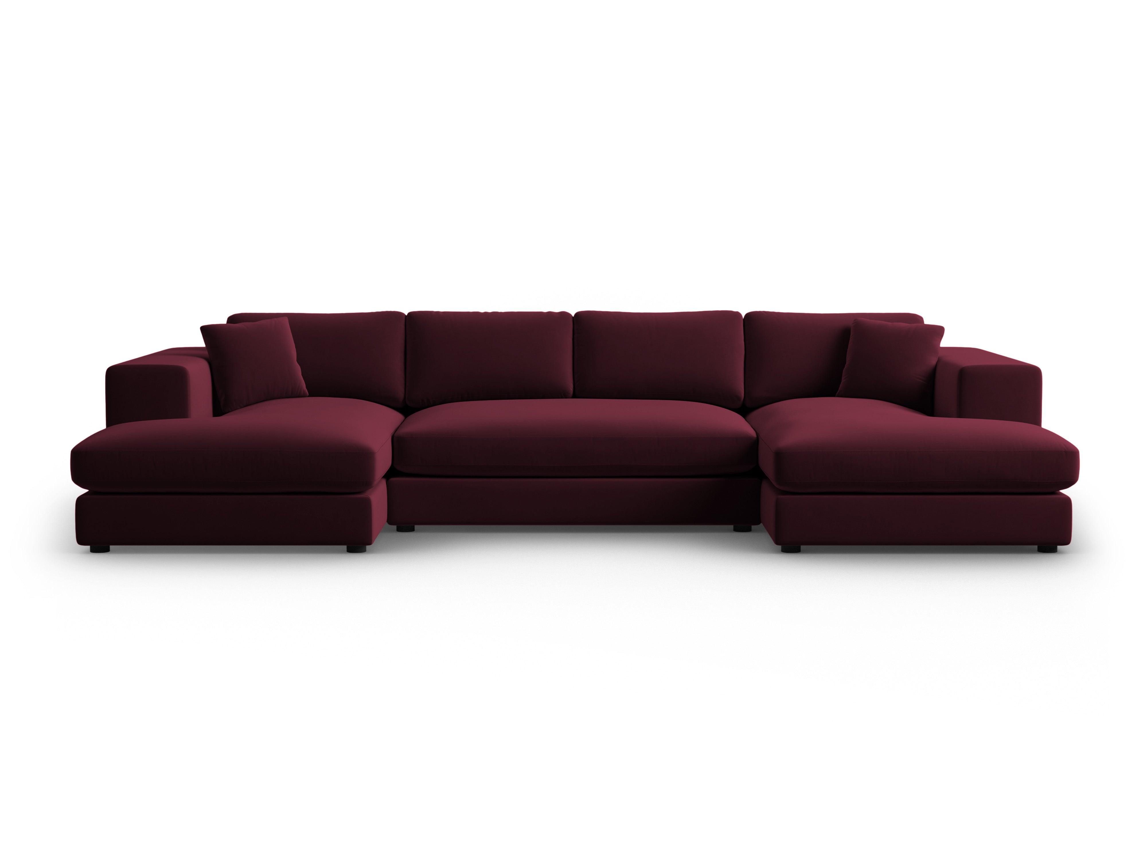 Panoramische fluwelen hoekbank TENDANCE bordeauxrood