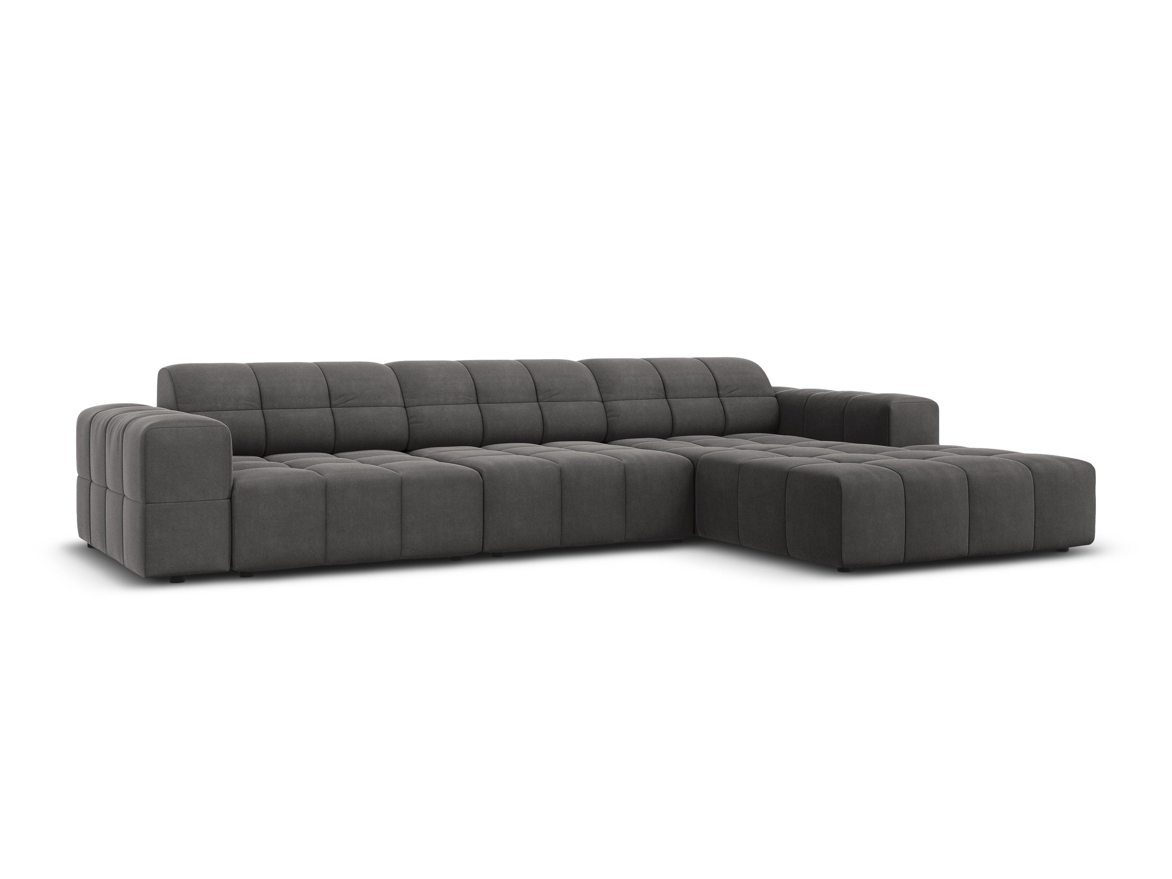 Donkergrijze 4-persoons fluwelen rechtshoekbank CHICAGO