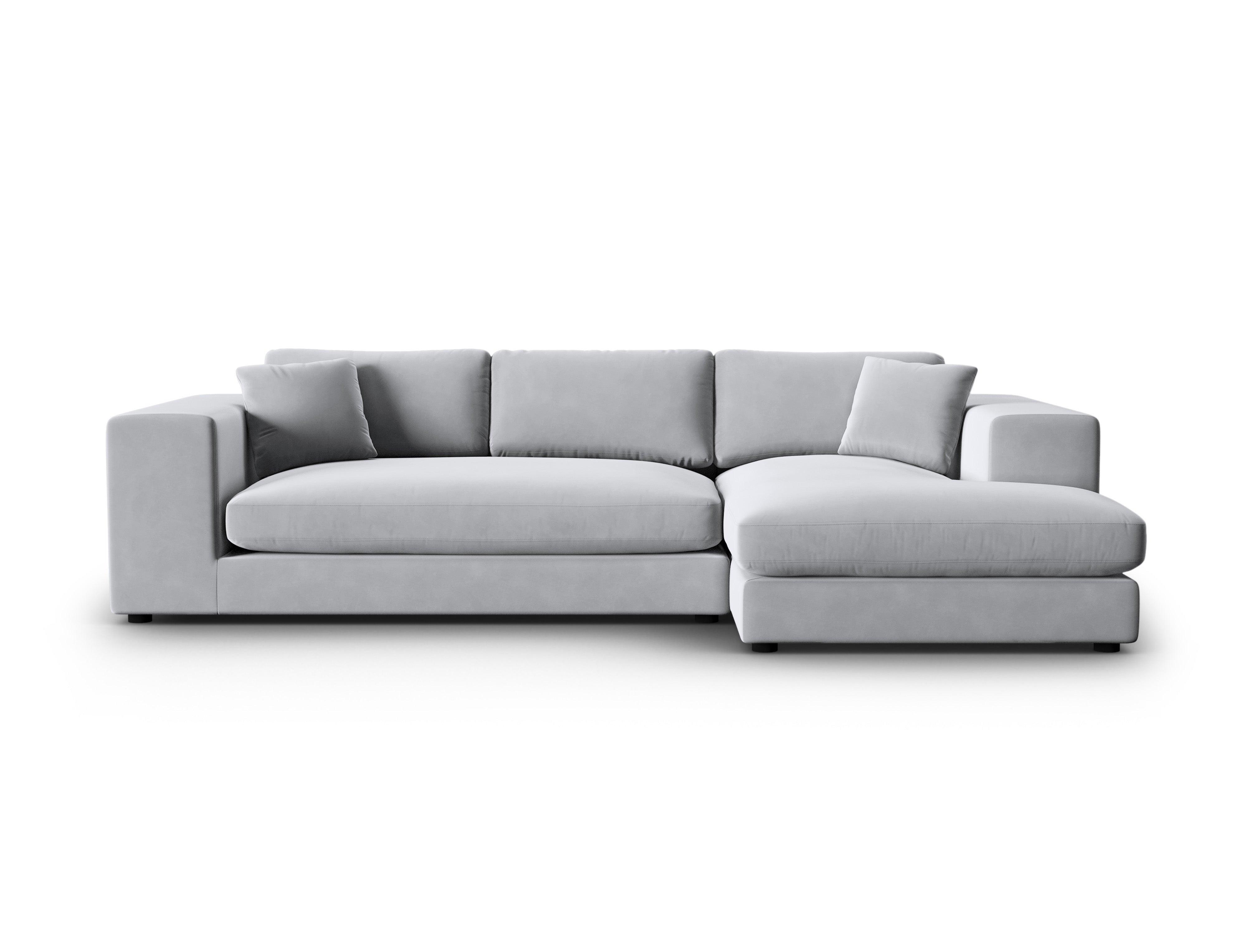 Fluwelen hoekbank rechts TENDANCE lichtgrijs