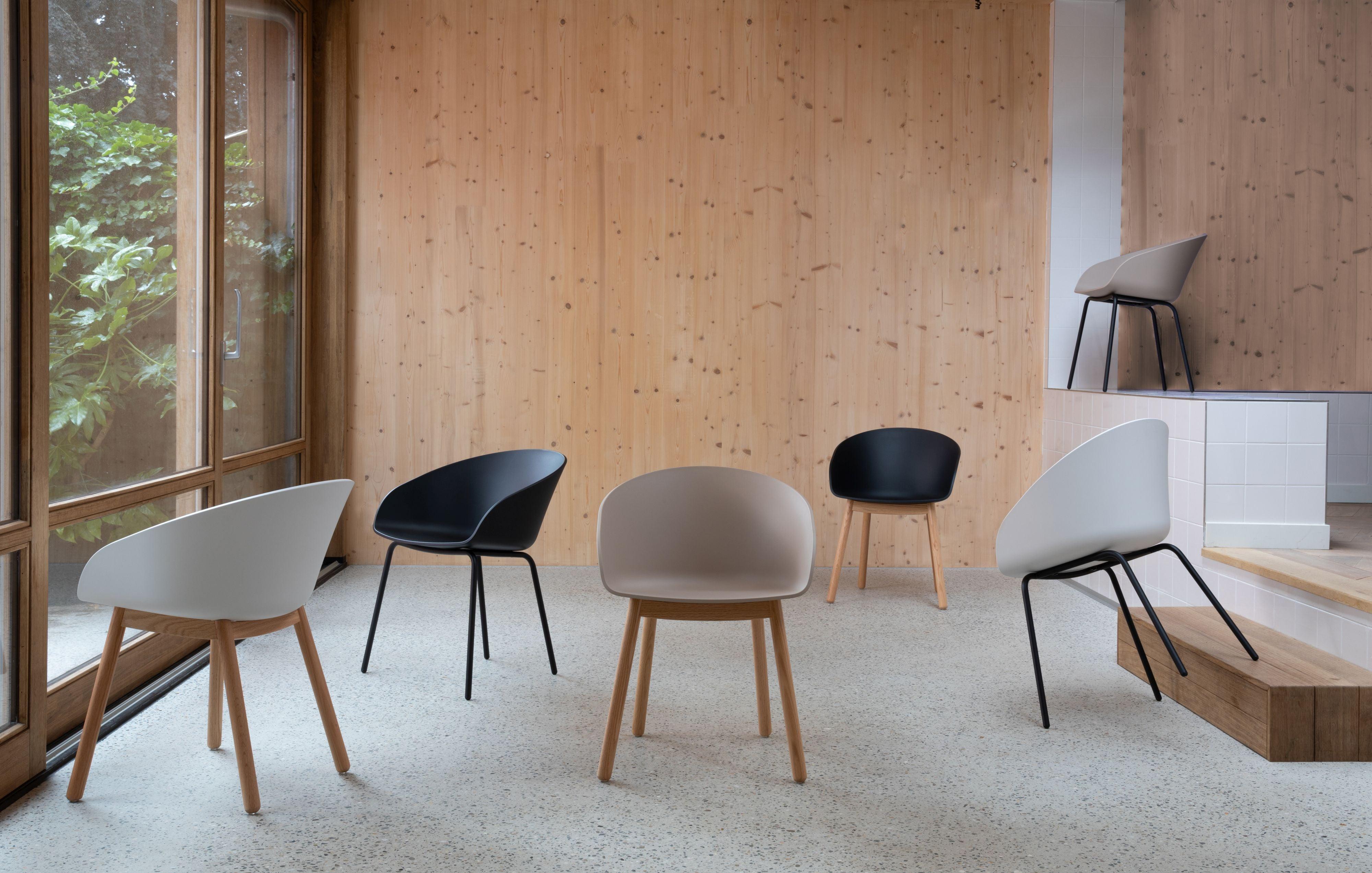 De zitting is voor 90% gemaakt van gerecycled plastic en is beschikbaar op een basis van natuurlijk eiken of zwart poedergecoat staal. Void kan onder elke tafel geschoven worden, waardoor er ruimte overblijft voor de echt belangrijke dingen, zoals leefruimte.