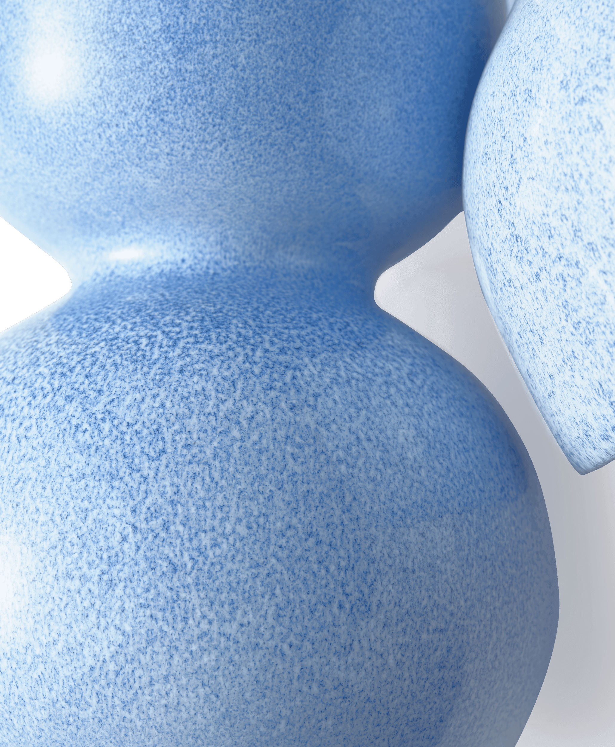 Vaas Boolb in de kleur blauw is een absoluut uniek element van inrichting. Dankzij de handmatig aangebrachte reactieve glazuur is elk van deze vazen uniek en onnavolgbaar. Hun bijzonderheid komt voort uit oude oosterse technieken die zijn toegepast zowel in het glazuurproces als in het creëren van de vorm.