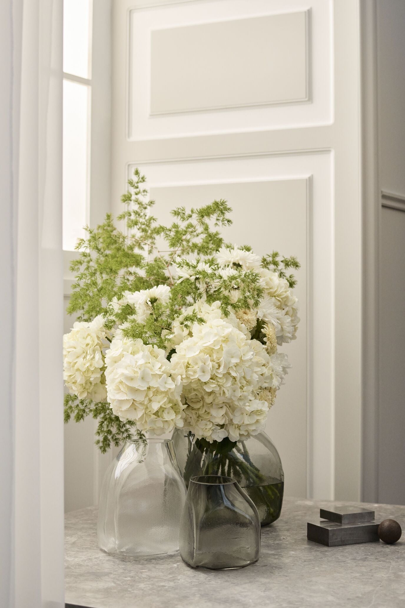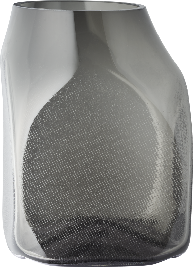 Elke vaas Bronco is uniek, omdat deze is gemaakt van geblazen glas – transparant of mat opaalwit – dat wordt gevormd in textiele zakken, waardoor het een kenmerkend, uniek patroon krijgt. Deze techniek zorgt ervoor dat elk exemplaar zich onderscheidt door zijn individuele karakter en subtiele elegantie.