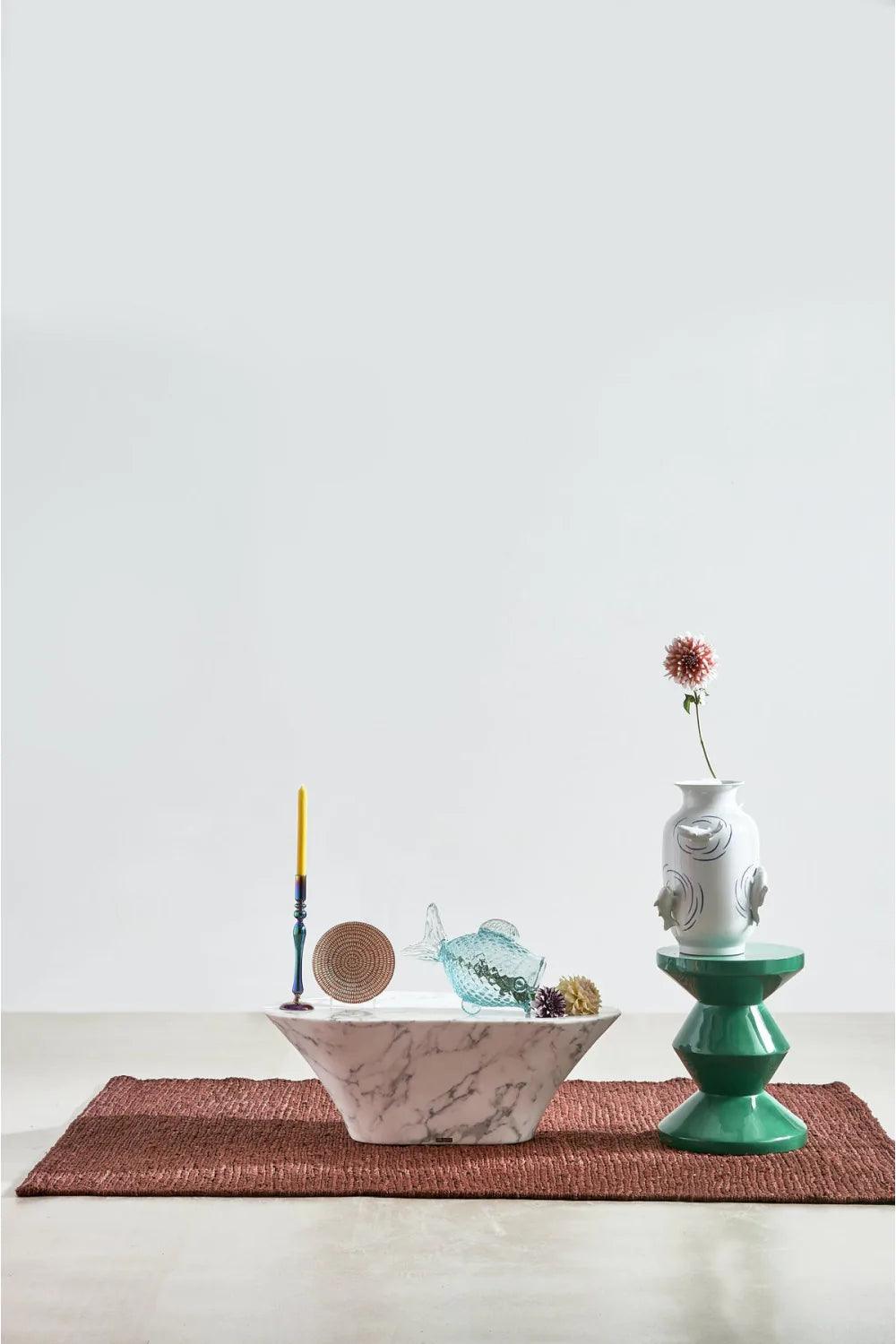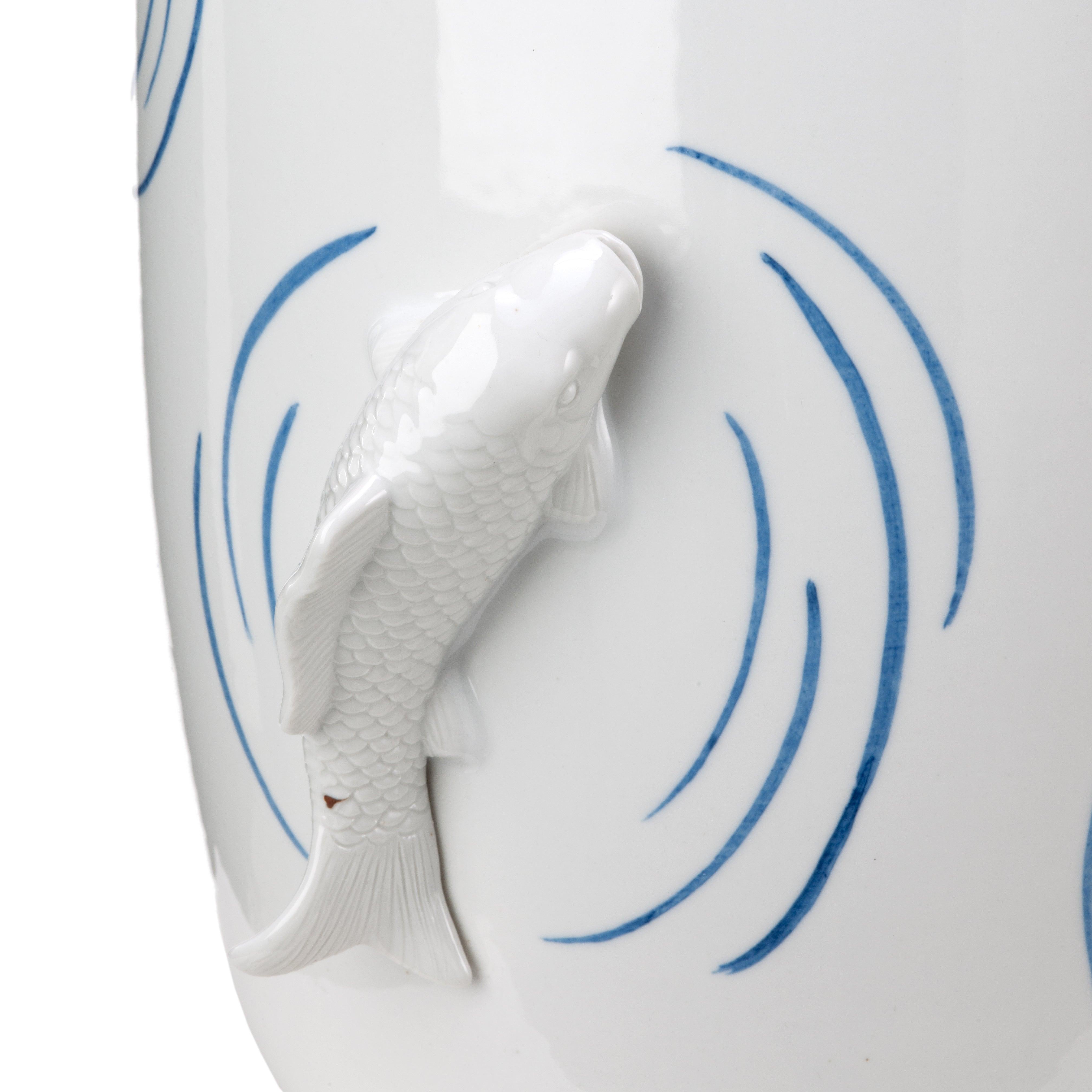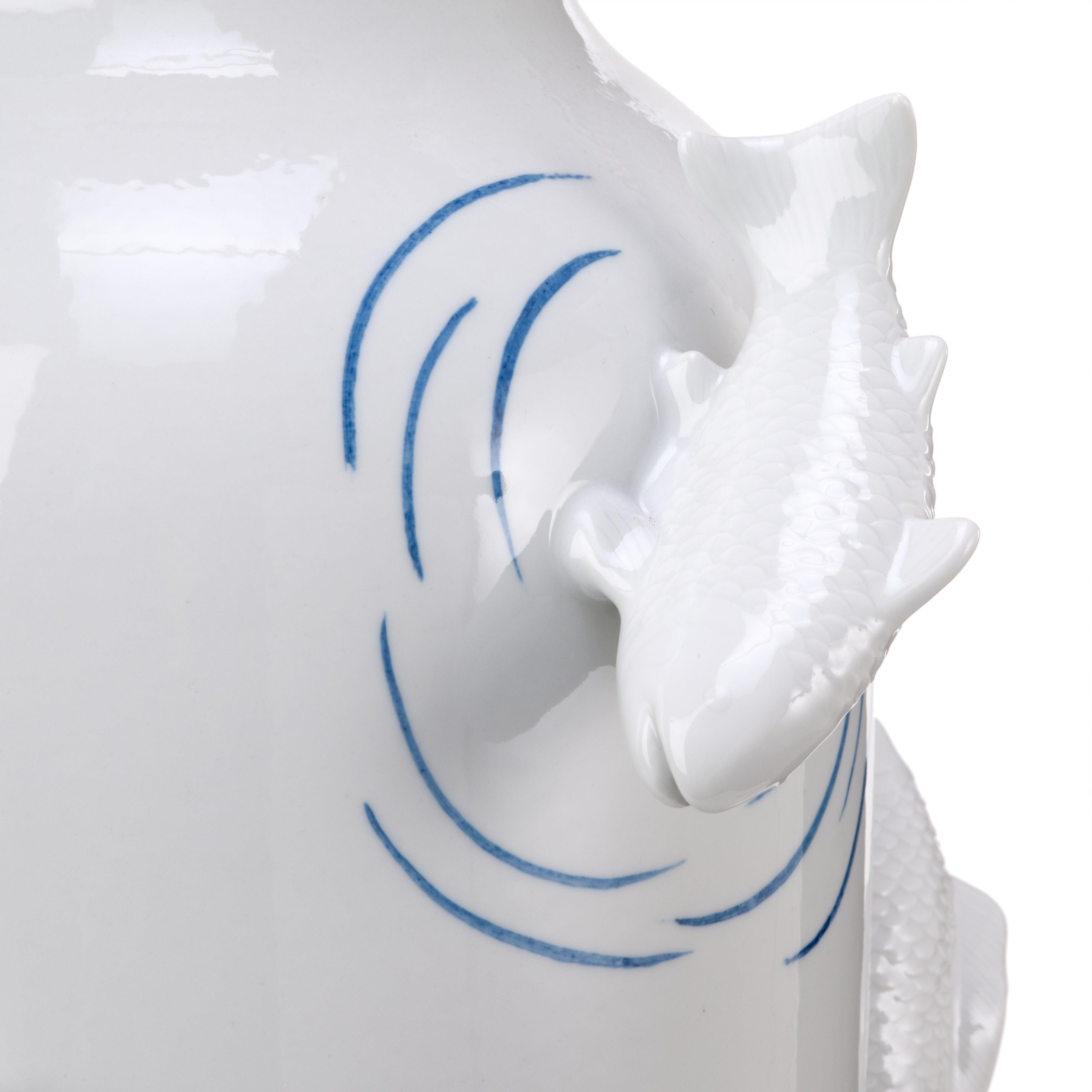 Vaas Fish Pond in de kleur wit is een esthetische aanvulling die een vleugje excentriek ontwerp in uw huis brengt. De unieke vorm en de uitstekende sculpturen van vissen zijn een duidelijke inspiratie uit de natuurlijke schoonheid van Japanse tuinvijvers. Het subtiele, maar opvallende uiterlijk maakt dat de witte vaas Fish Pond een ideale aanvulling is voor bijna elk interieur.