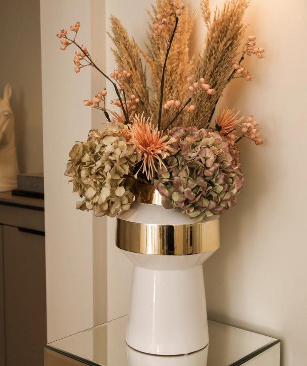 Wazon Object in de kleur wit is een combinatie van elegantie en minimalisme. Het klassieke wit past perfect bij de glanzende, gouden elementen die zich onderscheiden van andere producten van dit type. Het subtiele, maar indrukwekkende uiterlijk weerspiegelt perfect de aard van dit object en voegt een unieke uitstraling toe. Het gladde, wit-gouden glazuur benadrukt de kwaliteit van het ontwerp, terwijl de vorm het subtiele vakmanschap dat tijdens de creatie is gebruikt, accentueert.