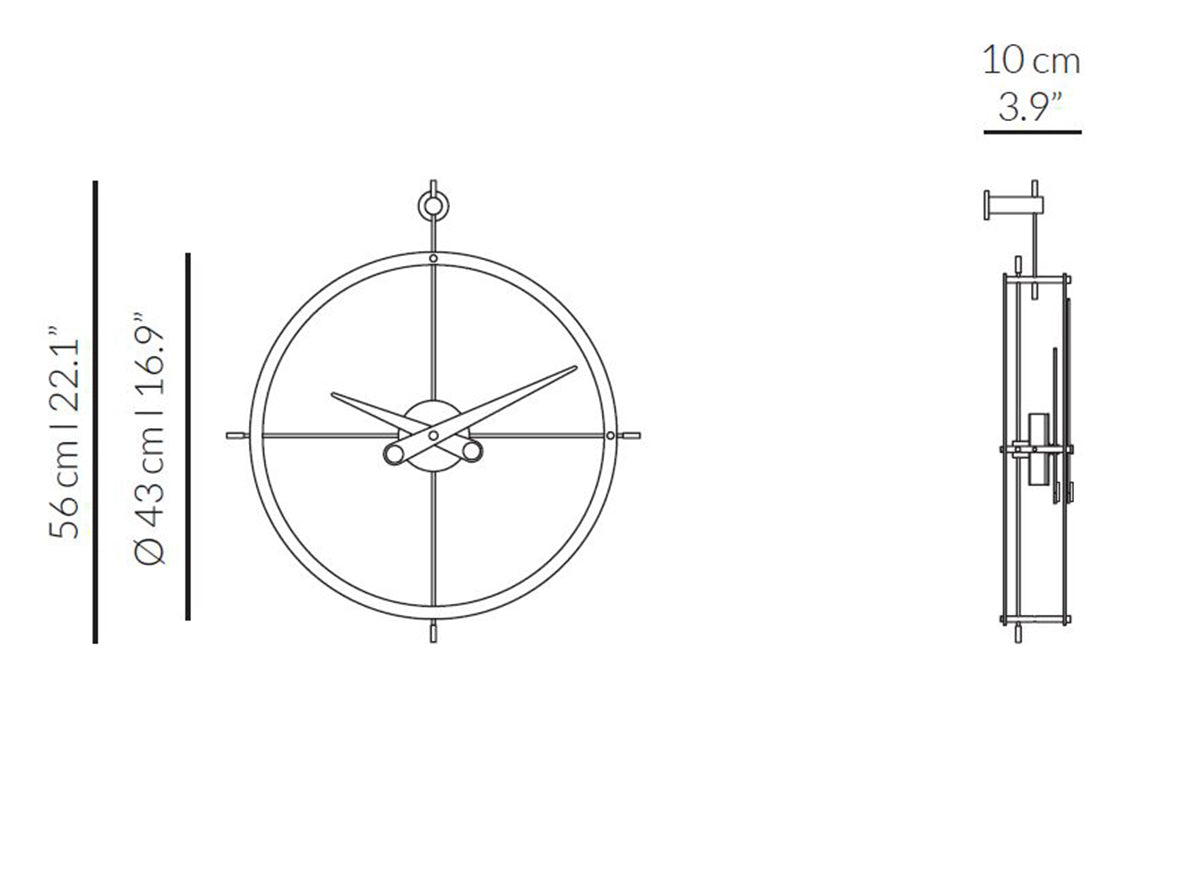 Wandklok Dos Puntos Premium is een elegante keuze uit de premium collectie, die betovert met de harmonieuze combinatie van gepolijst messing en natuurlijk notenhout. Deze klok valt op door zijn subtiele vorm met dubbele ringen, die hem een lichte en verfijnde uitstraling geven. Dankzij de edele materialen en verfijnde details, zal deze moderne wandklok perfect passen in een elegante woonkamer, slaapkamer of stijlvolle commerciële ruimte.