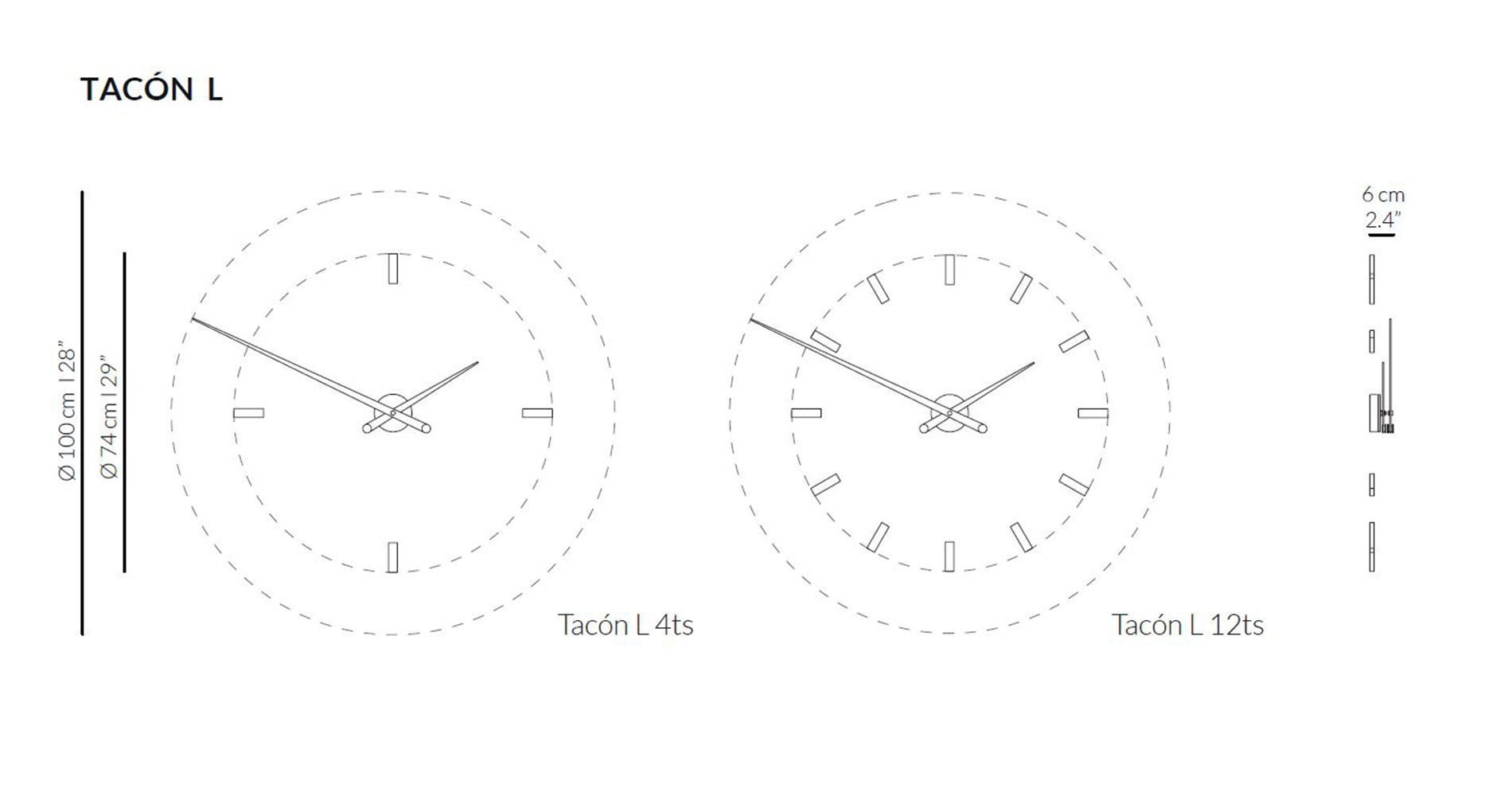 De eenvoudige, modulaire constructie maakt het mogelijk om de opstelling van de elementen aan te passen aan individuele behoeften, wat deze design wandklok veel vrijheid in de inrichting biedt. De elegantie van het model schuilt in zijn lichtheid en verfijnde details van verchroomd of gepolijst messing. Als u op zoek bent naar een opvallende decoratie met een minimalistisch karakter, dan is deze grote wandklok de ideale keuze.