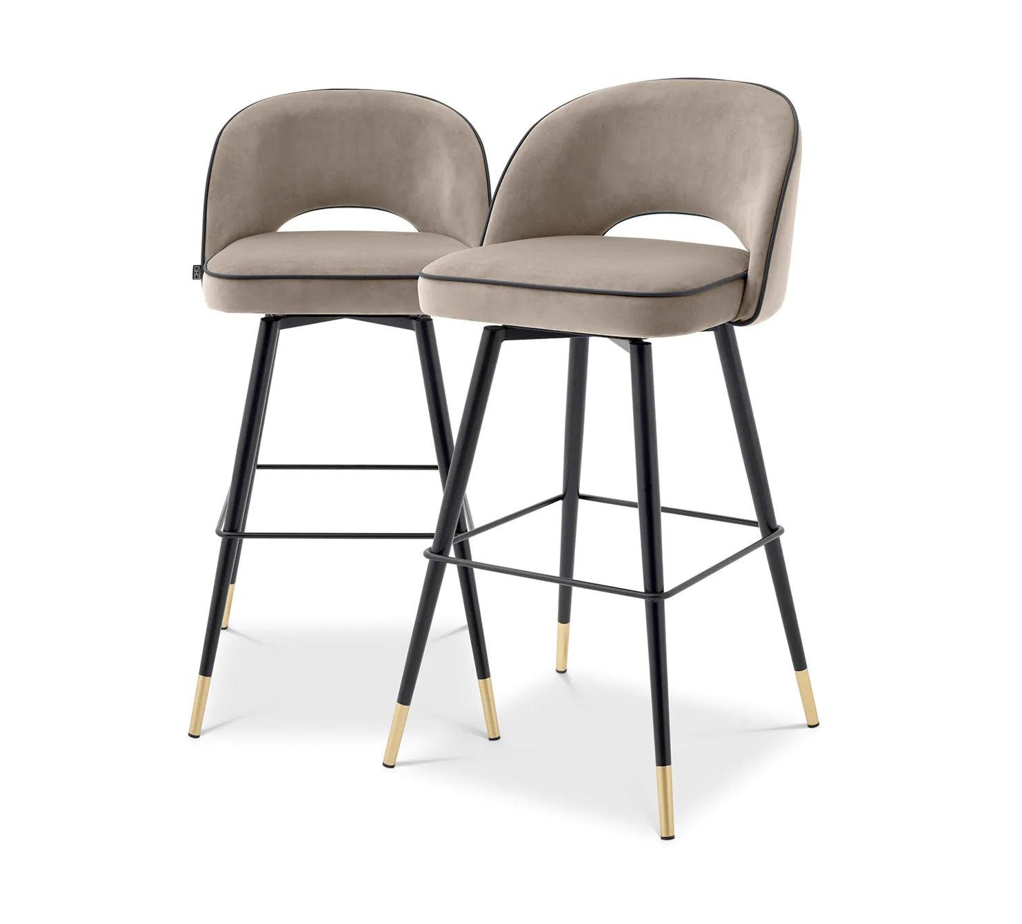 Set van fluwelen barkrukken CLIFF donkerbeige