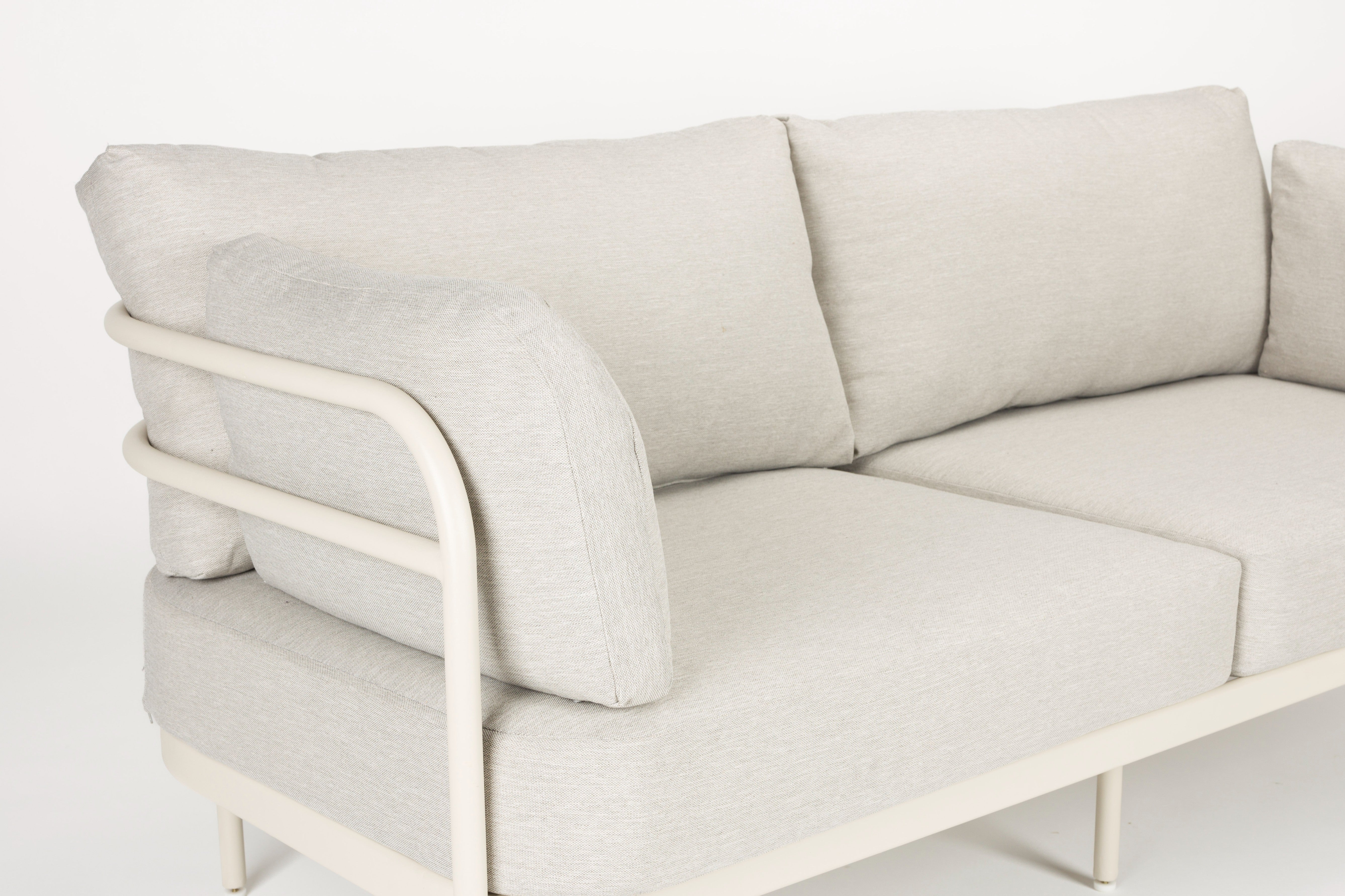 Tuinset Vista is de ideale keuze als u een stijlvolle en comfortabele relaxruimte in de buitenlucht wilt creëren. De stevige constructie van aluminium met een lichte poedercoating garandeert duurzaamheid en weerstand tegen weersomstandigheden, terwijl het tegelijkertijd een lichte, moderne uitstraling geeft aan het geheel. Ruime kussens op de zitting en rugleuning zorgen voor maximaal comfort.